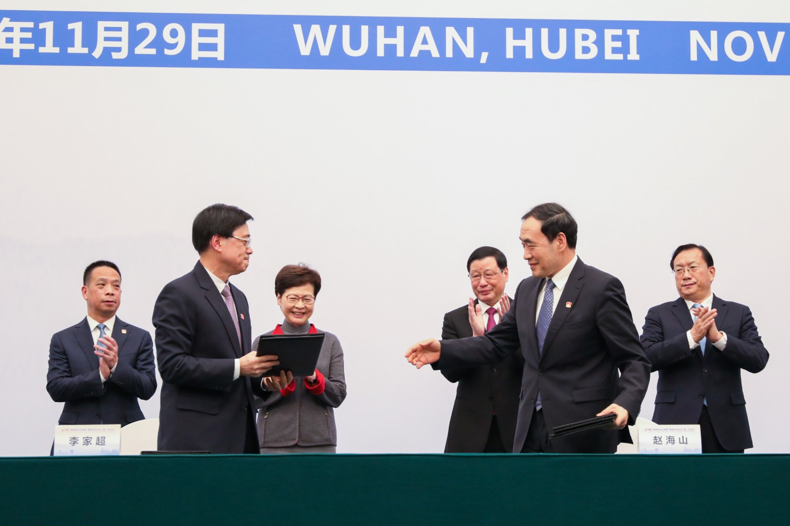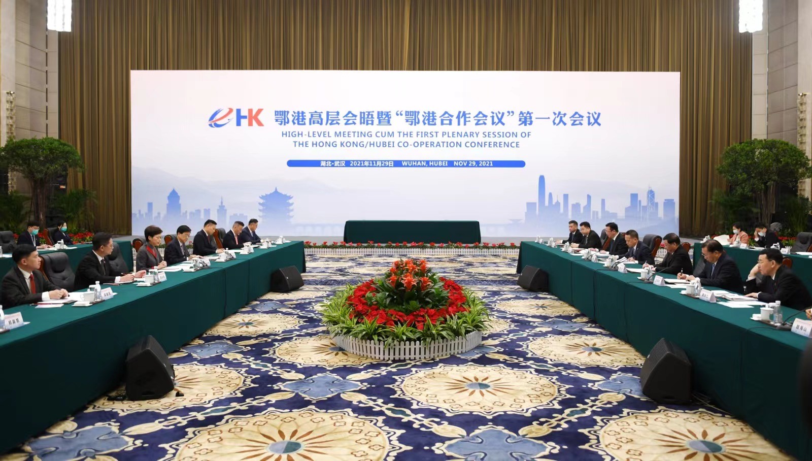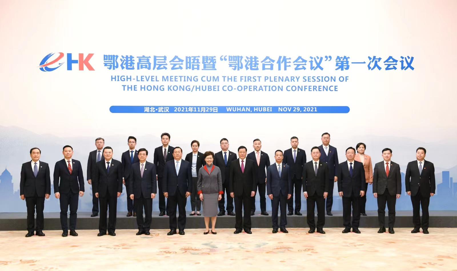 行政長官林鄭月娥(左三)今日率領特區政府代表團在武漢出席鄂港高層會晤暨鄂港合作會議第一次會議。