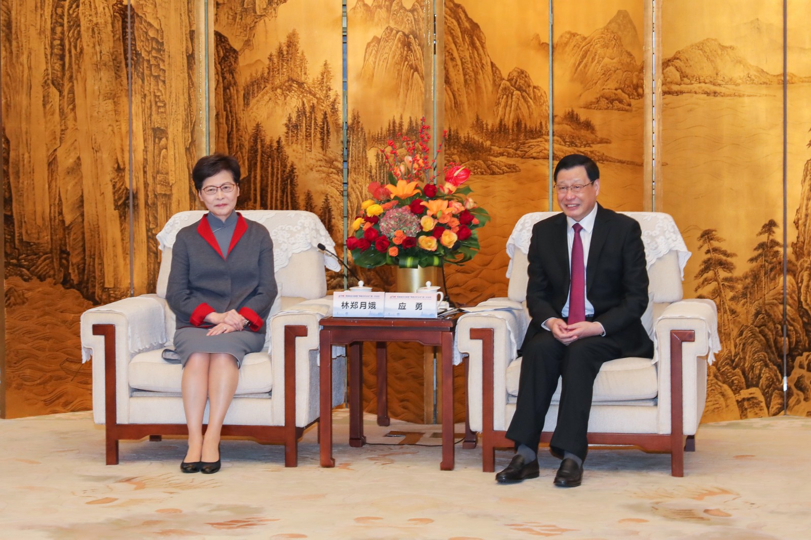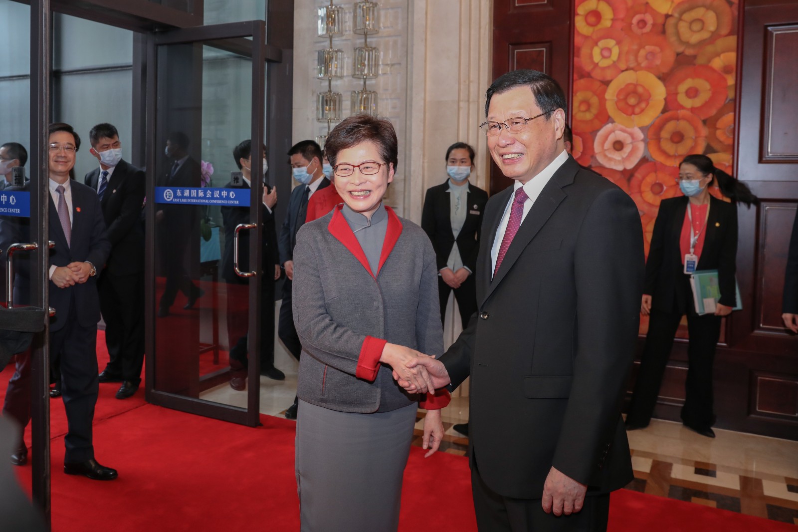 林鄭月娥(左)與湖北省委書記應勇(右)會面。