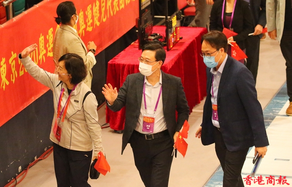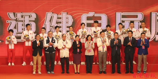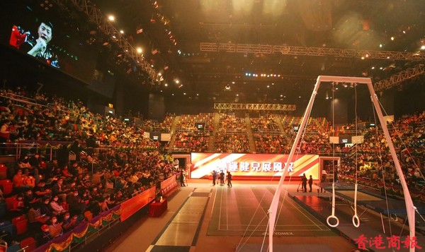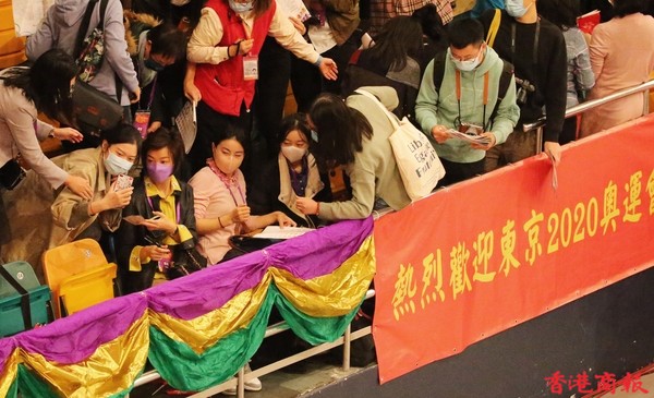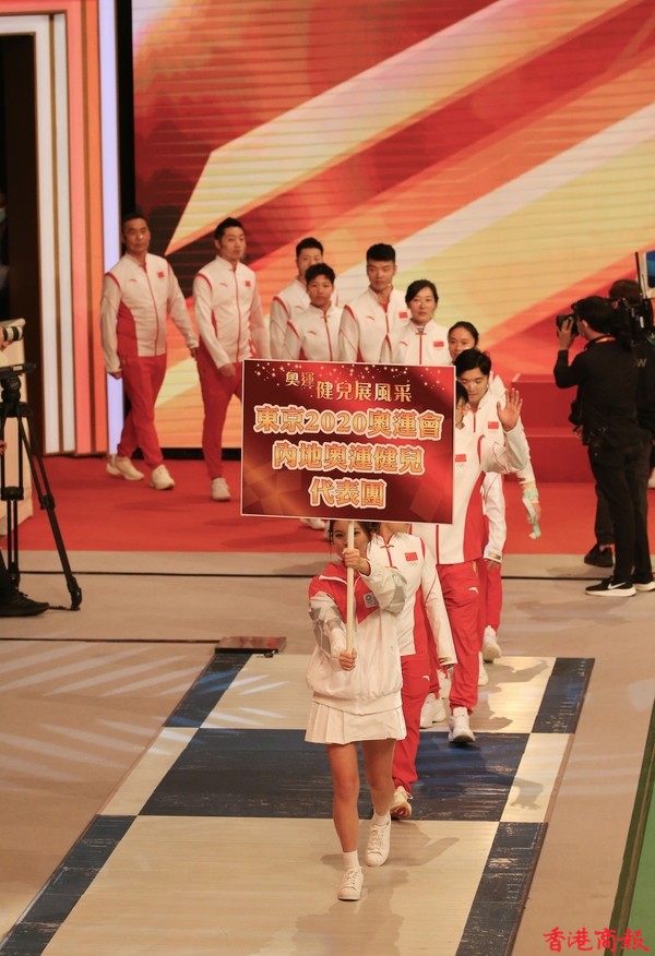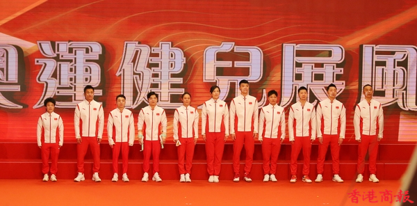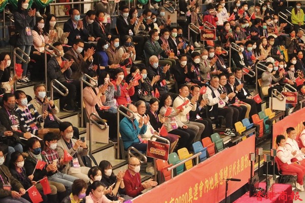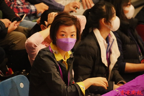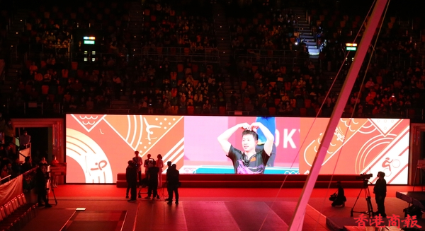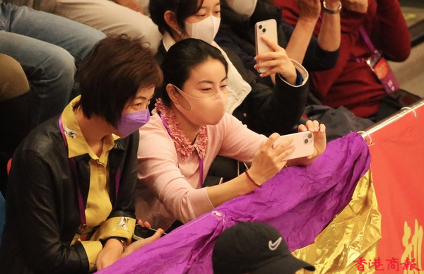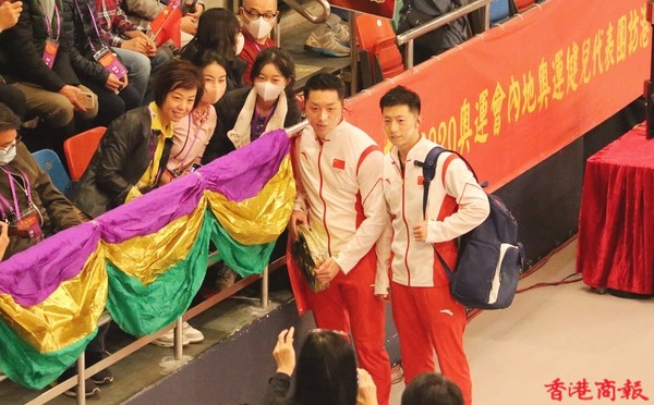內地奧運健兒代表團今日(4日)出席3場公開活動。今早,伊利沙伯體育館舉行「羽毛球、劍擊、體操及乒乓球運動」示範表演,前中國跳水隊運動員、「跳水女王」郭晶晶及乒壇「大魔王」張怡寧並肩坐在觀眾席,成為最具分量的座上客。(記者 志誠/攝)