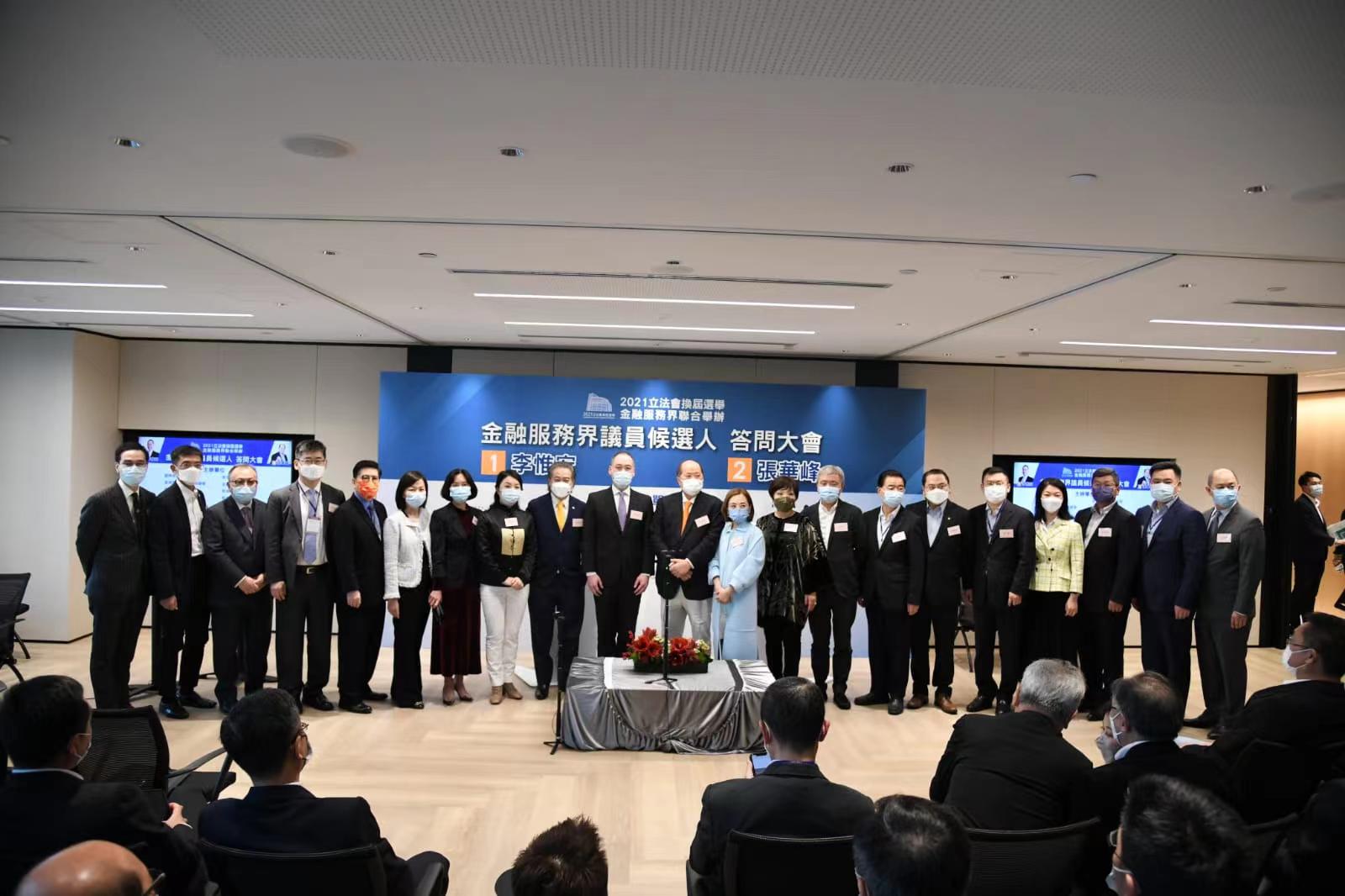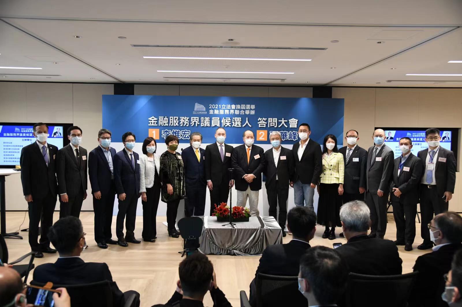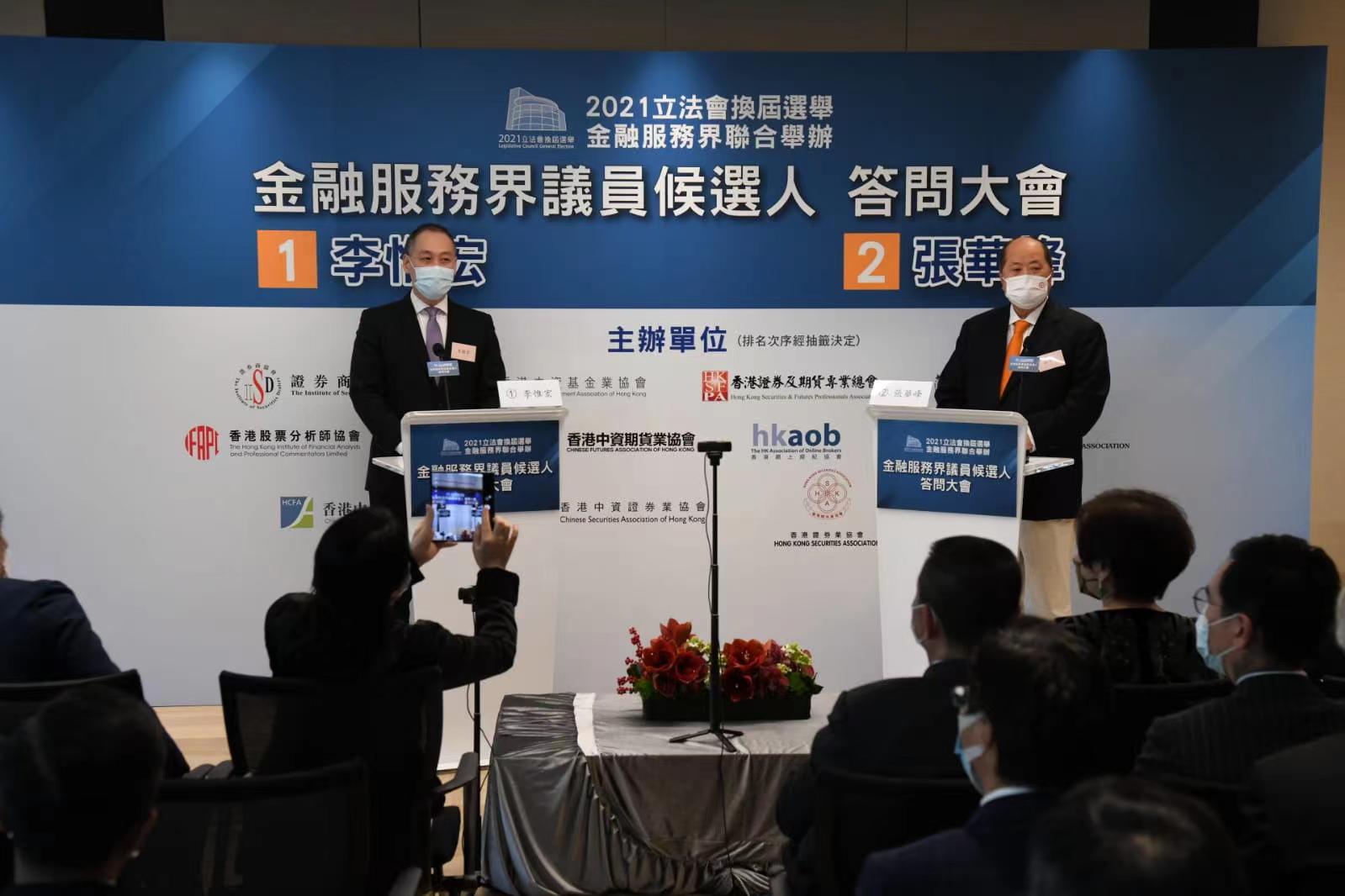 立法會選舉將於12月19日舉行,其中功能界別金融服務界共有2名候選人爭取1個議席。2021立法會選舉香港金融服務界今日舉辦「金融服務界議員候選人答問大會」,邀請了2位候選人李惟宏及經民聯的張華峰出席,讓大家更了解候選人政綱。