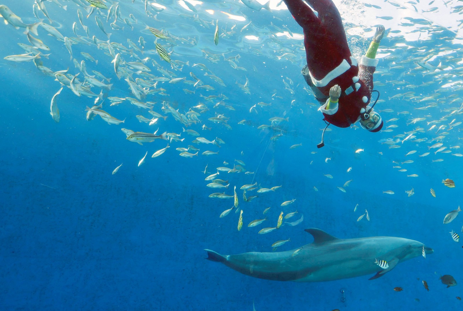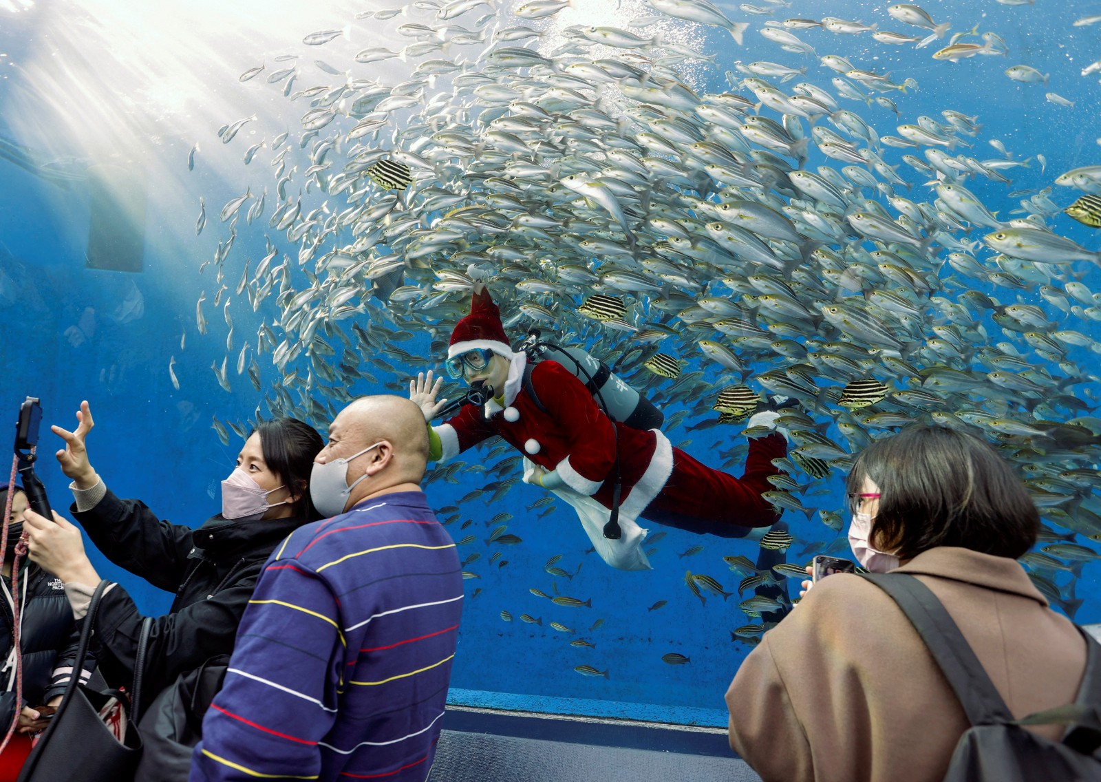 據悉,節日限定的聖誕老人潛水員將每天登場2次,至聖誕節當天為止。