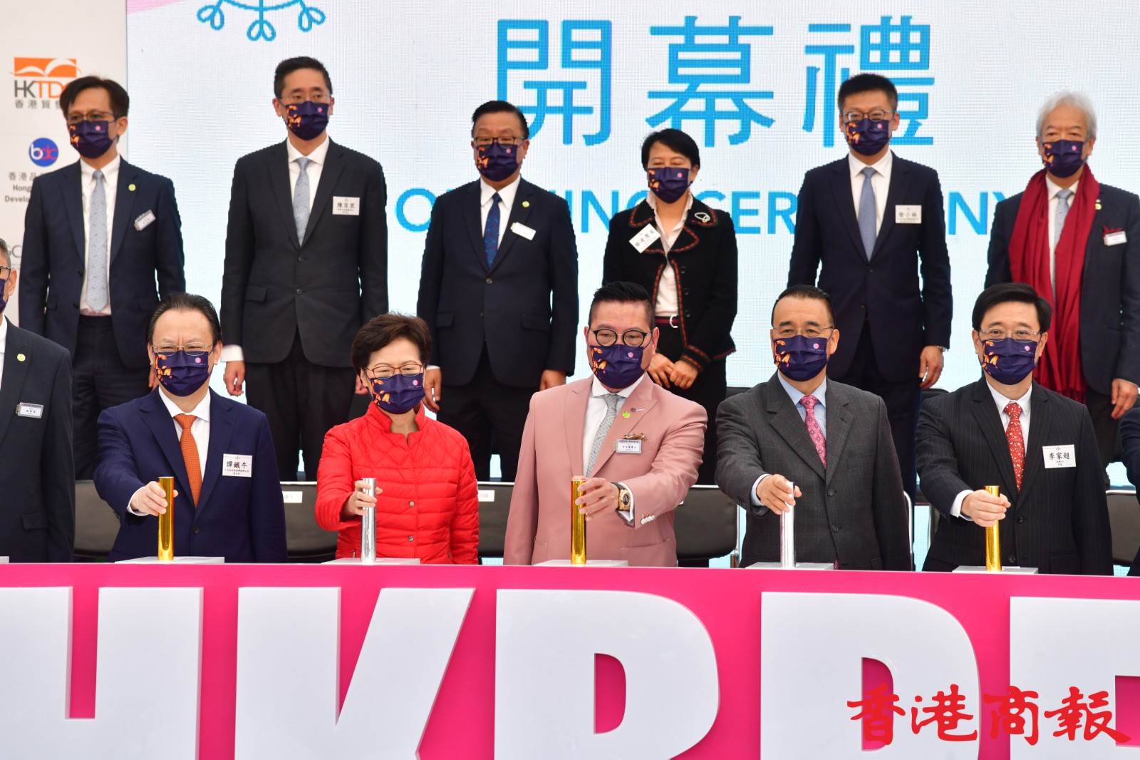 香港中華廠商聯合會11日舉行「第55屆工展會」開幕典禮,主禮嘉賓包括行政長官林鄭月娥、中國外交部駐港特派員劉光源、中聯辦副主任譚鐵牛、政務司司長李家超、食物及衛生局局長陳肇始、商務及經濟發展局局長邱騰華、民政事務局局長徐英偉、保安局局長鄧炳強、香港中華廠商聯合會會長史立德,以及廠商會副會長兼展覽服務有限公司主席施榮恆。