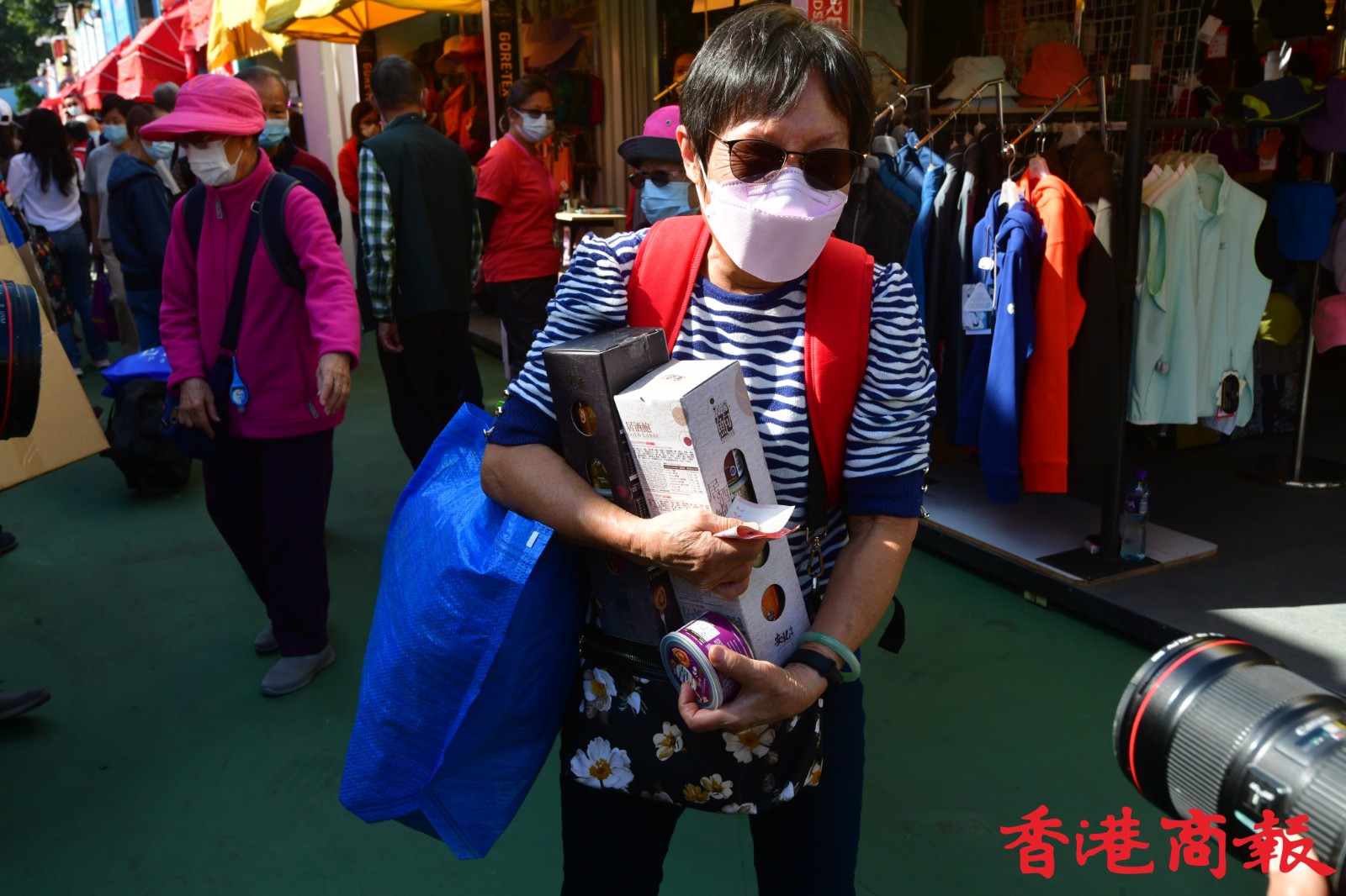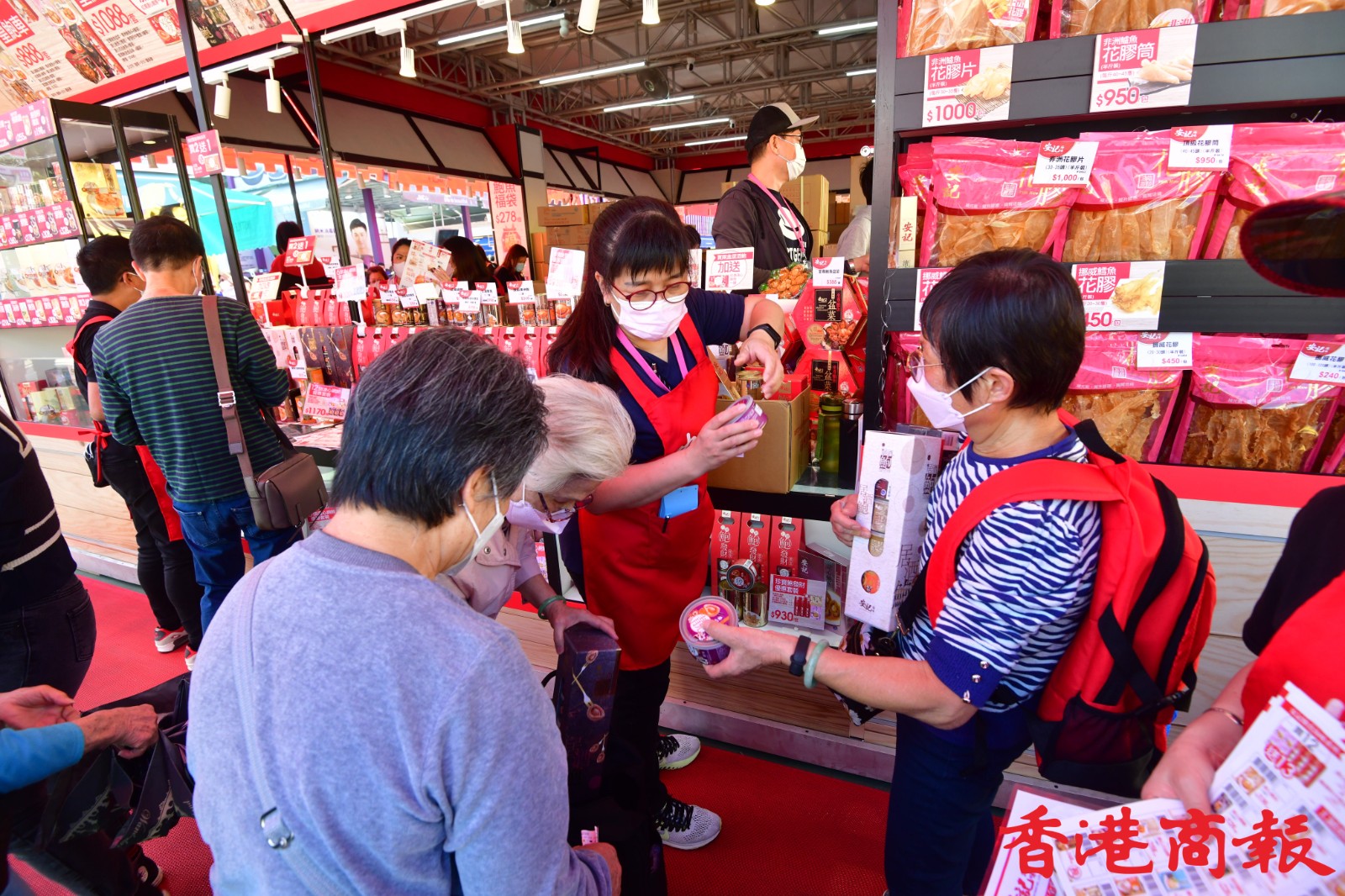 還有參展商推出5元一罐鮑魚,亦有商戶每日推出20套海味福袋,18元有齊花膠、元貝、鮑魚及花菇。