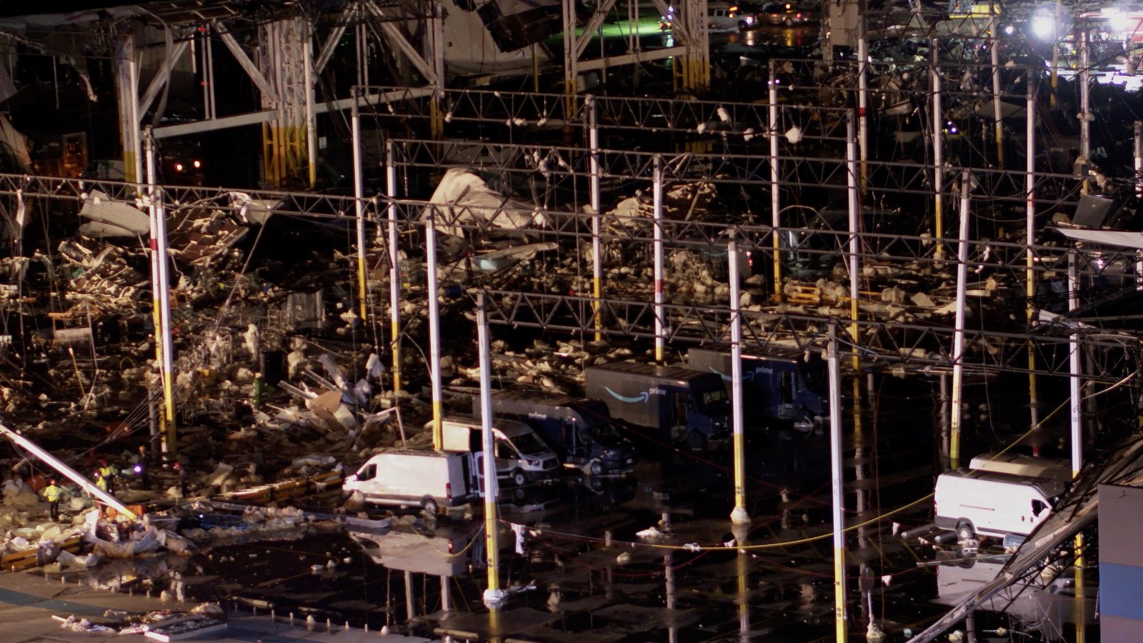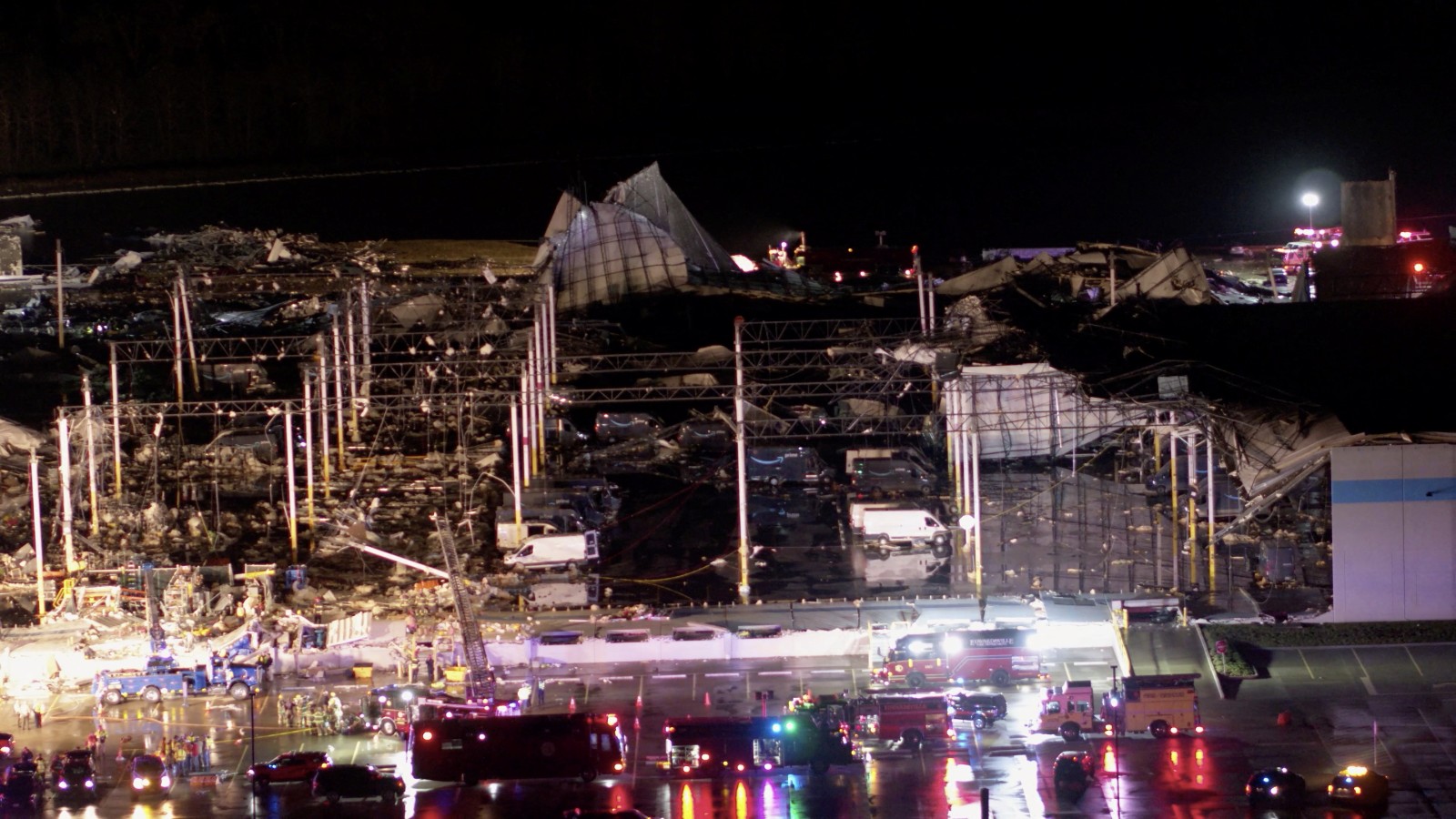 頂圖:被龍捲風摧毀的亞馬遜倉庫。路透社