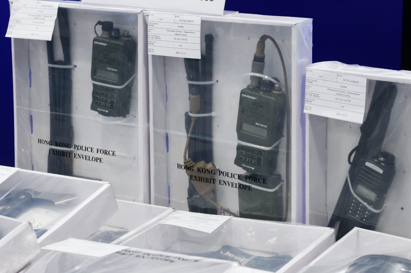 陳昕指出,檢獲的證物中其中一支由模型榴彈發射器改造成、以氣體推動的煙霧彈發射器,190支經改動懷疑超過法定2焦耳的氣槍,多把斧頭和利刀,6部對講機,9個軍用防毒面具,5個濾罐,16塊軍用級別的防彈板和11支預壓式高壓氣槍和相關設備,包括高壓電動氣泵、氣樽、6700粒口徑0.25至 0.82毫米的原彈。
