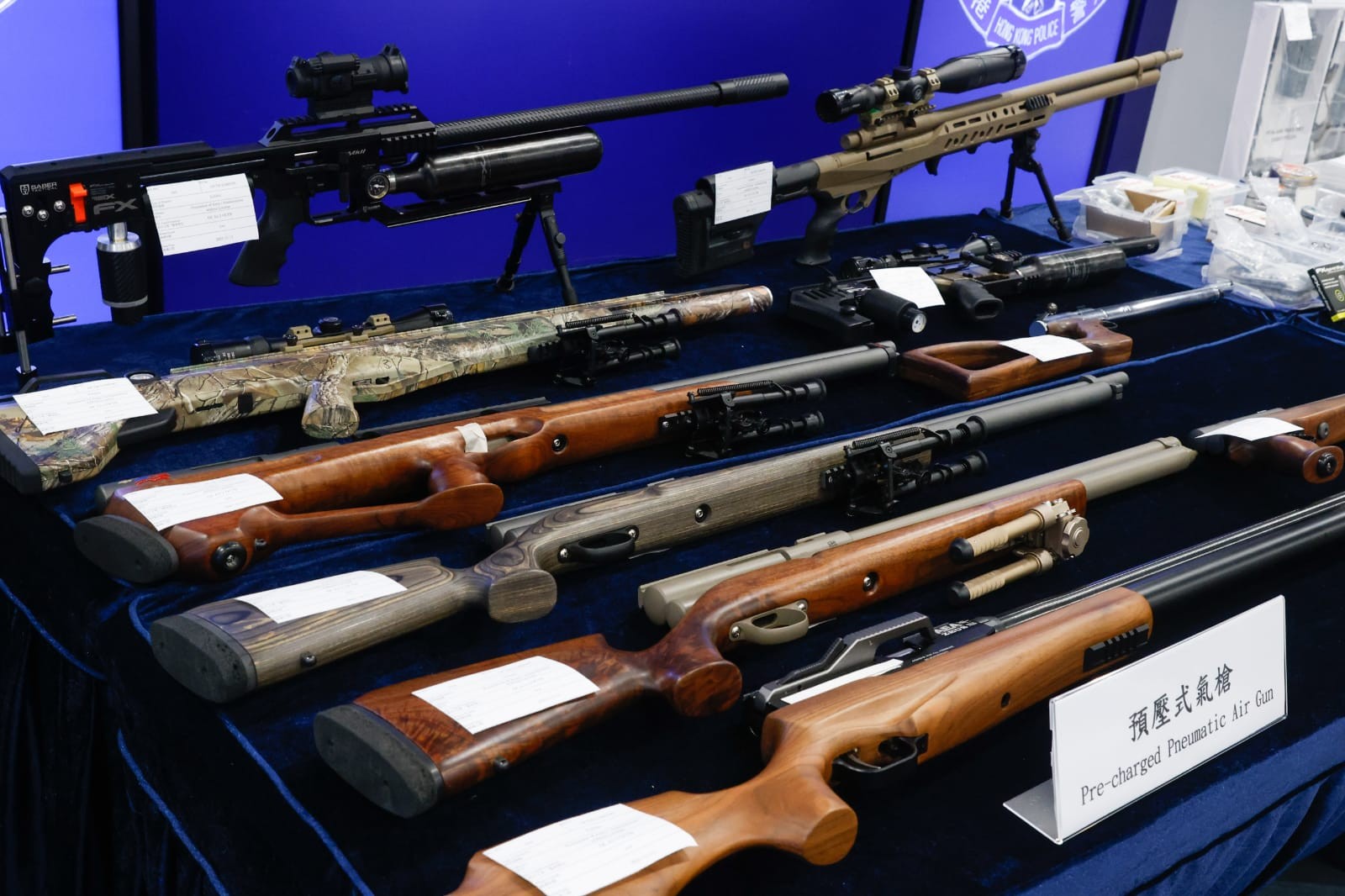 警方在本月12日和13日認為時機成熟,展開代號「拓宇」行動,在全港各區搜查11個住宅和2個貨倉,共拘捕9男1女(21至46歲),檢獲大量懷疑經改裝的氣槍,窗口動能超過2焦耳,涉嫌違反香港法例,11支預壓式充氣高壓氣槍,其殺傷力與真槍相若,以及充氣電泵,電樽、6千多發不同口徑原彈,一個煙霧彈發射裝置,另外一批軍用物資如防彈板、防毒面具、濾罐、對講機、斧頭和利刀。