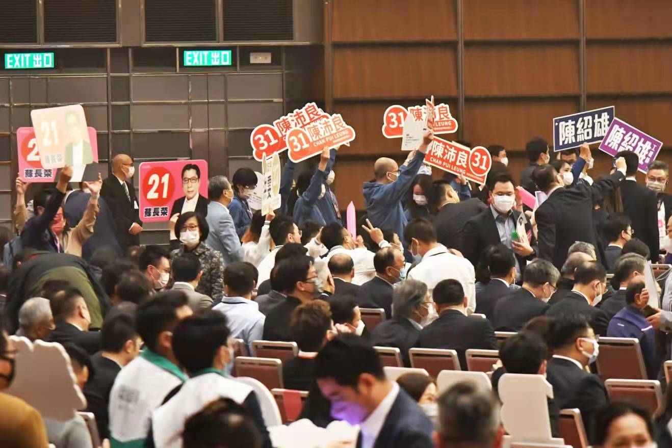 51位候選人依次進行1分鐘發言,講解政綱及理念。工聯會理事長黃國表示,希望可以發揮所長服務香港,又希望達到人人有機會,使年輕人可向上流,勞工可以有尊嚴。香港教育工作者聯會副主席鄧飛表示,要重振香港的愛國教育,甚至是整體教育水平。華潤集團粵港澳大灣區首席戰略官李浩然說,希望可以利用自己在內地工作的經驗,為香港發展作出貢獻。中國銀行(香港)總法律顧問簡慧敏說,多年來服務不同階層,希望為國家、為香港作出貢獻。