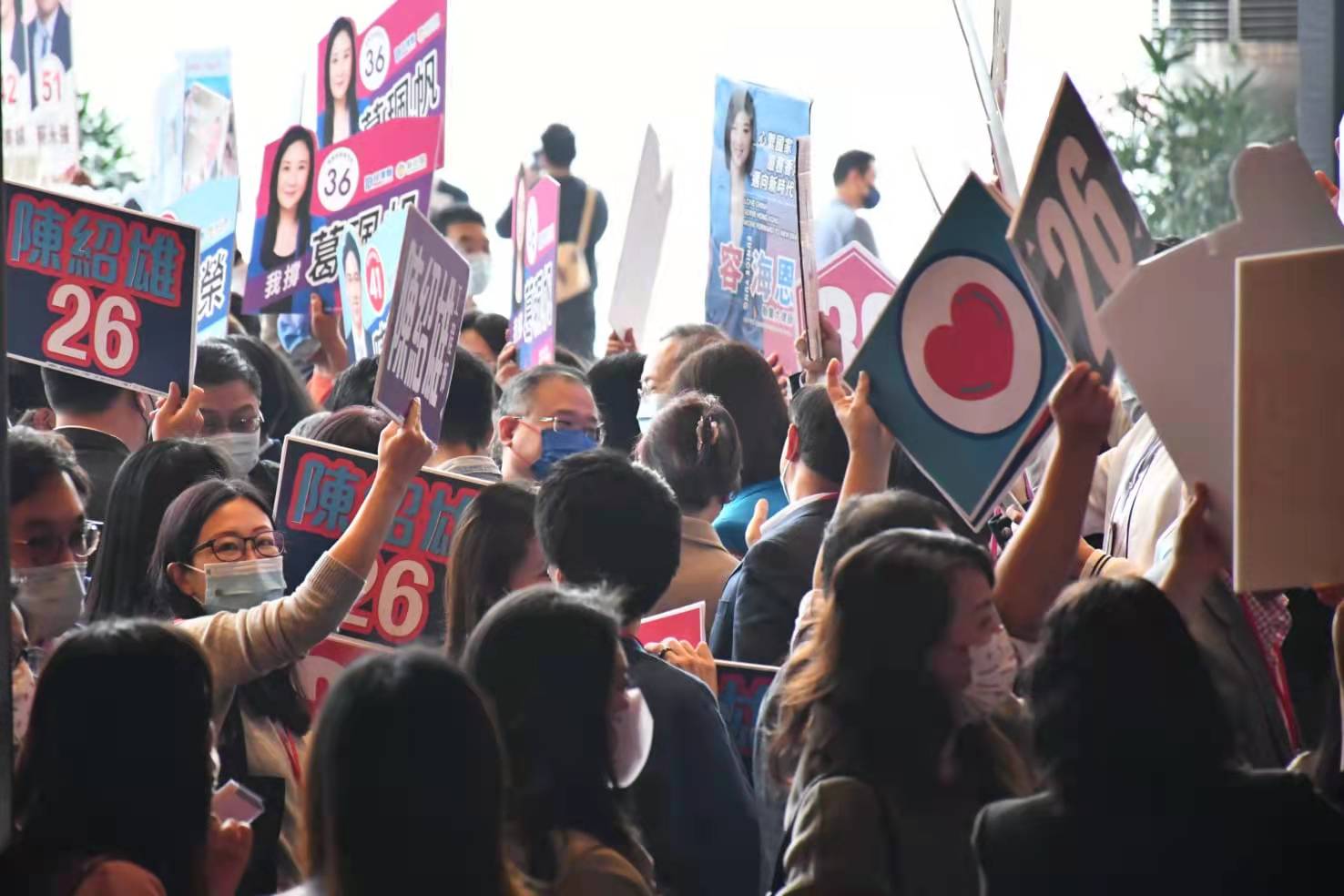 候選人及團隊在現場拉票,爭取支持。記者馮瀚文攝