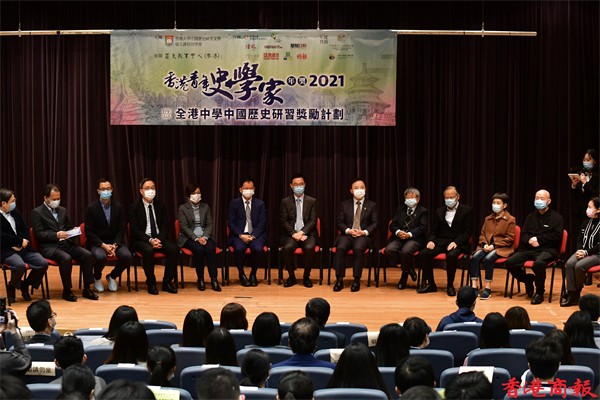 適逢「香港青年史學家年獎」舉辦進入十周年,本年頒獎禮承蒙香港教育局楊潤雄局長及香港大學張翔校長應允蒞臨並擔任主禮嘉賓,以及香港大學名譽院士丁新豹教授到場發表主題演講。「全港中學中國歷史研習獎勵計劃」暨「香港青年史學家年獎」兩項活動旨在獎勵中學生研習國史,當進入大學之後選讀與文史相關之學系,薪火相傳,以期發揚人文精神,而兩項活動每年參與之學校代表甚眾。(崔俊良攝)