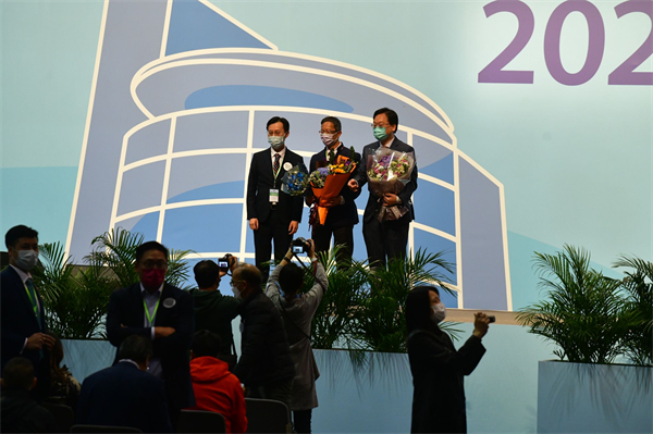 【2:30】選管會主席馮驊在點票中心的台上正式公布選委會界別當選名單。