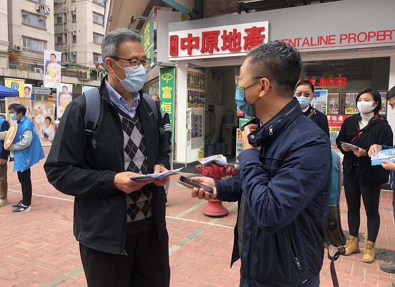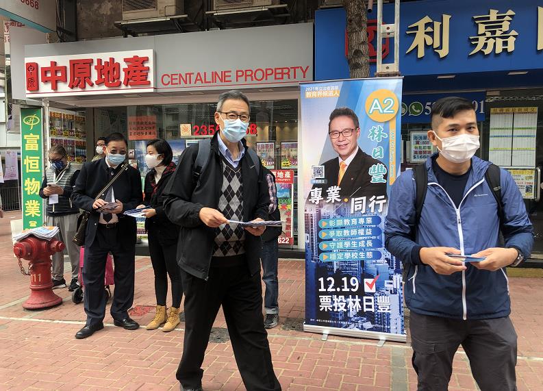 今日(19日)是立法會選舉投票日,立法會教育界功能組別候選人林日豐到多區拉票,爭取選民支持。