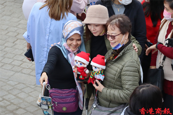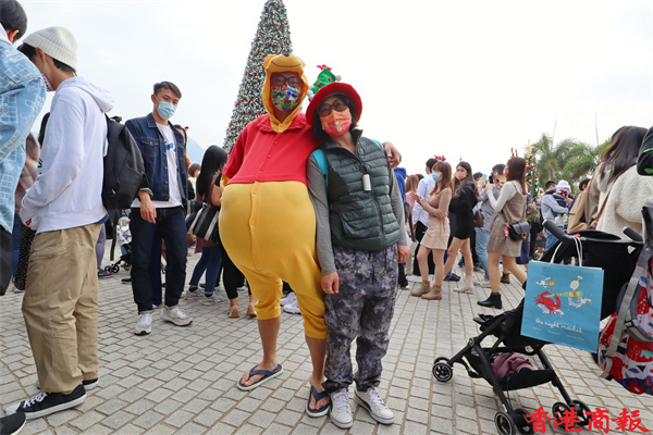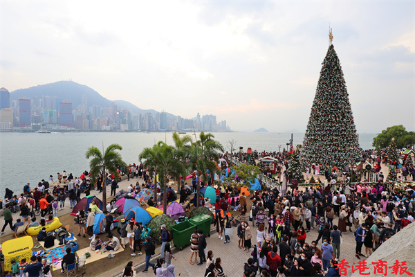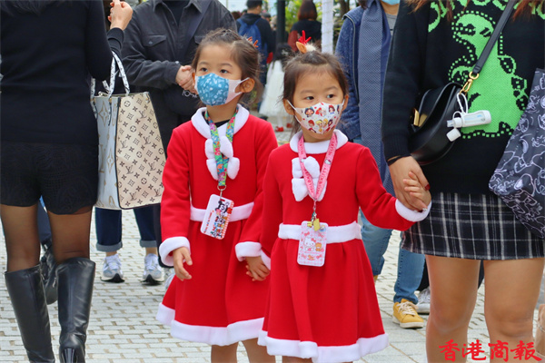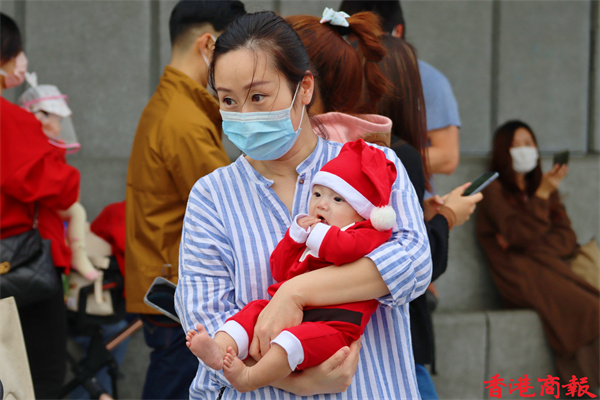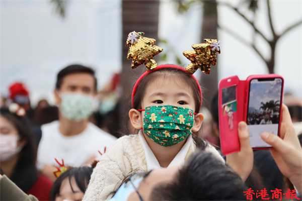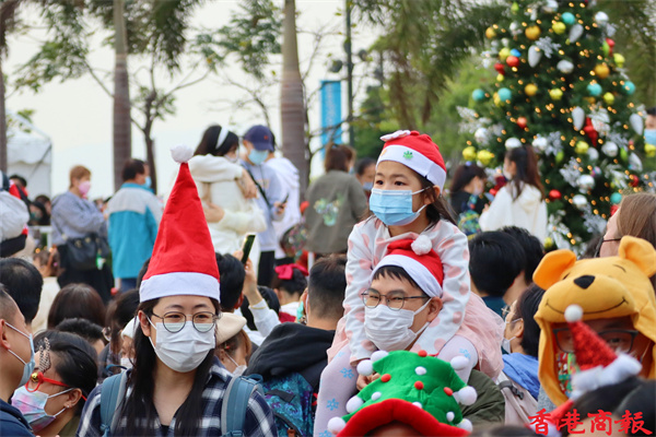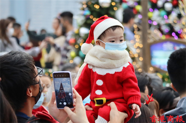 今天是聖誕節,午後有不少市民出來慶祝,各擺放了聖誕燈飾的節日聖地如:尖沙咀碼頭、廣東道、尖東、中環海濱等地都擠滿市民,為的是在大型聖誕裝飾前拍照留影。位於西九文化區的聖誕小鎮更是人山人海,這裏有全港最高的聖誕樹,不少市民慕名而來打卡,大人、小朋友、嬰兒,甚至寵物也悉心打扮,為節日增添了不少氣氛。
