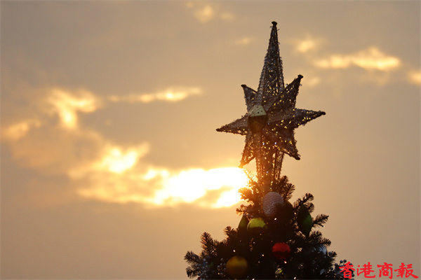 今天天氣雖不是陽光明媚,都是天陰陰的,但在黃昏時在雲層間透出絲絲陽光,令這個聖誕節增添了溫暖。(馮瀚文攝)