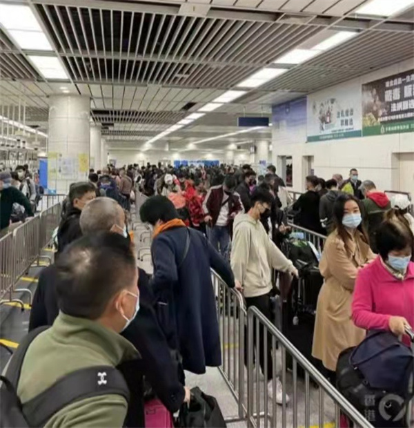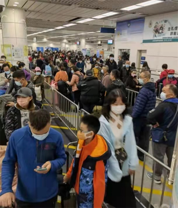 在2021年初,亦有大批香港市民為回內地老家過春節,在各口岸排長龍苦候數小時,場景堪比「春運」盛況。(網絡圖片)