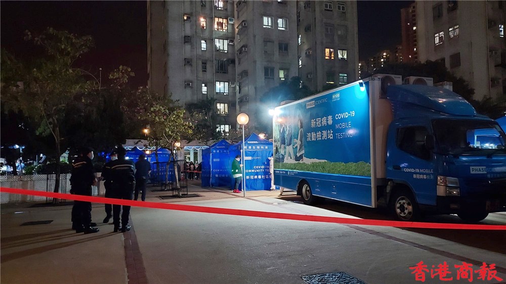 今日發現一宗初步陽性個案,初步顯示涉及變異病毒株,涉及一名42歲男子,在上址居住。(圖/記者 馮俊文、鄭玉君 攝)