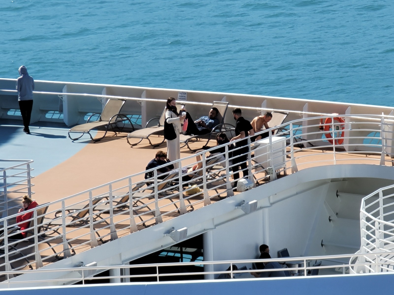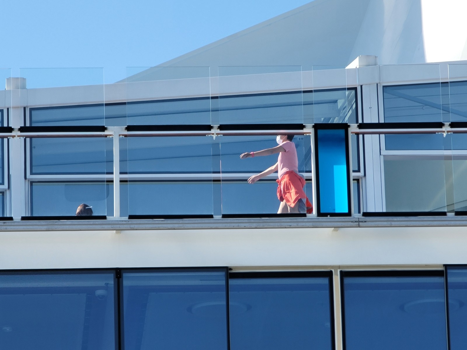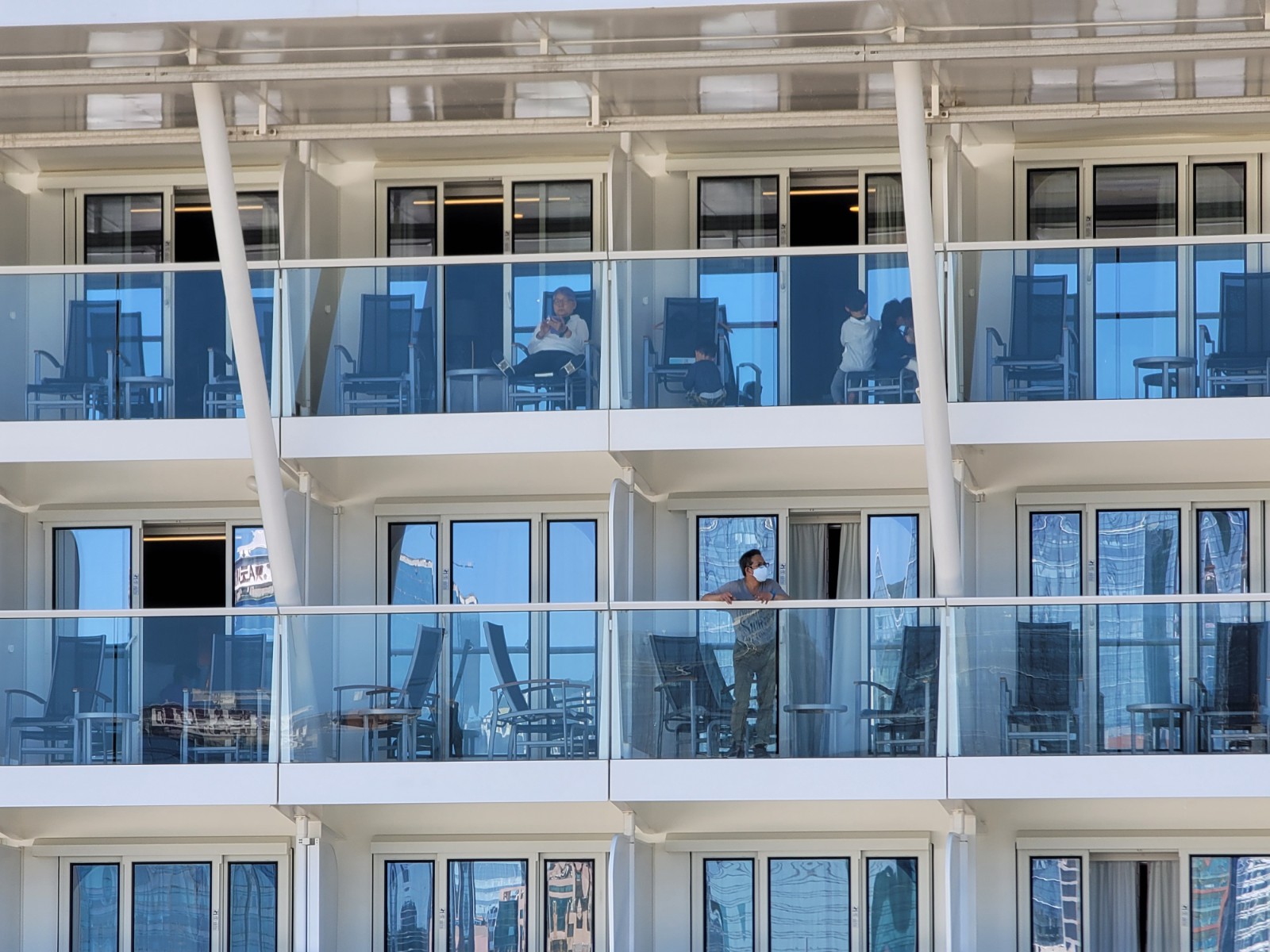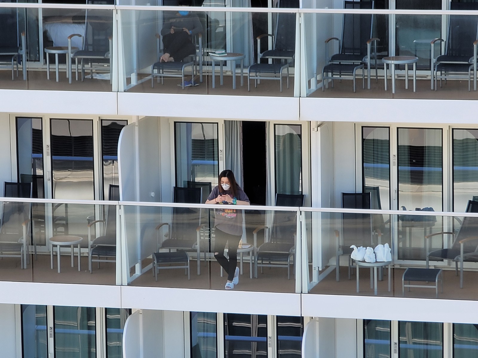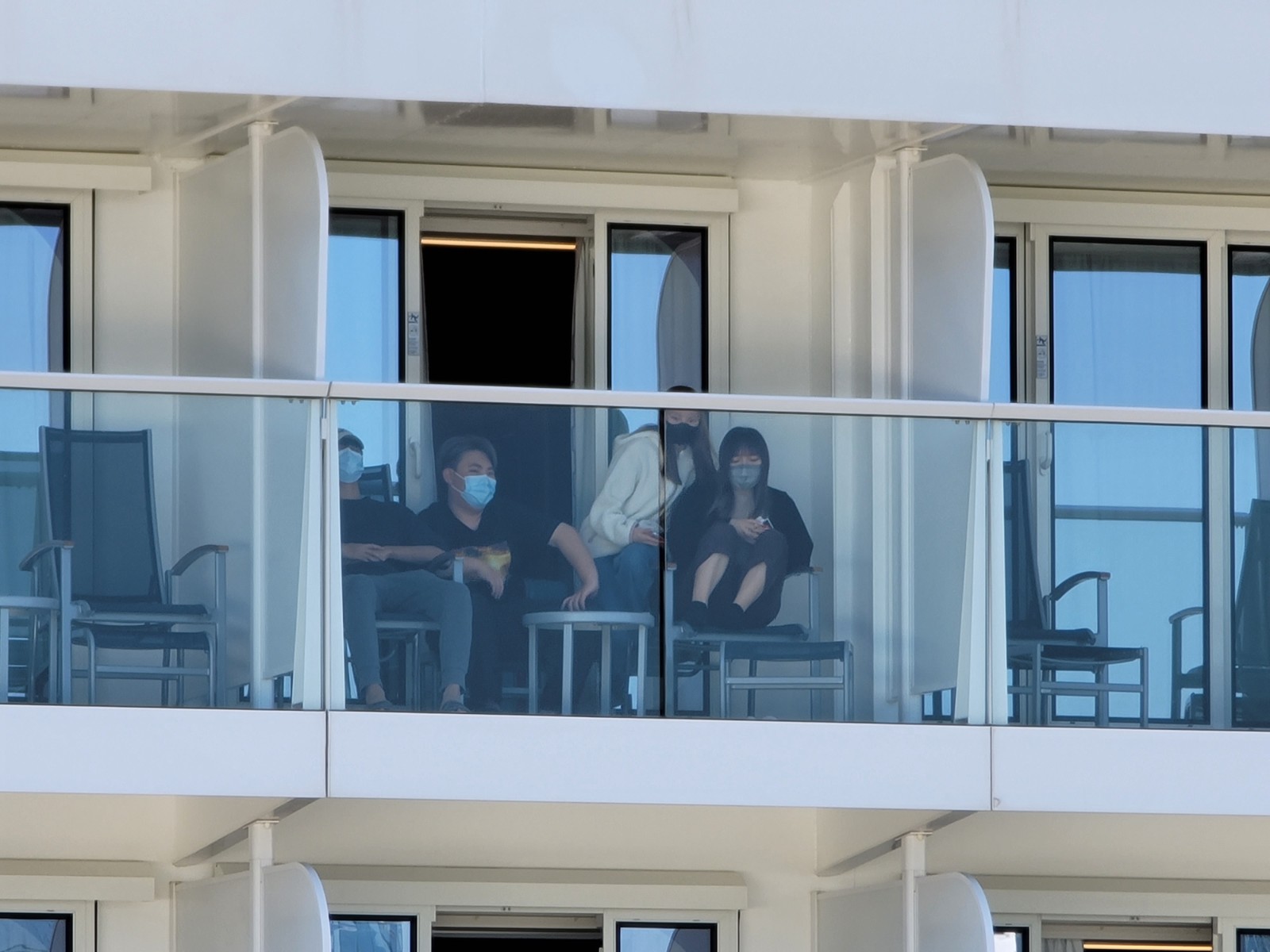 中心目前已要求船公司先將該9名密切接觸者在船上隔離,並為他們在船上進行病毒檢測,檢測結果初步均呈陰性。郵輪到達啟德郵輪碼頭後,衞生署人員上船為所有旅客及船員檢測,不少船上旅客站出房間陽台等候。9名密切接觸者則被送往竹篙灣檢疫中心進行檢疫。