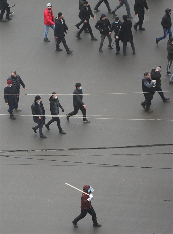 頂圖:抗議者和警方在阿拉木圖市中心發生衝突。俄衛通社