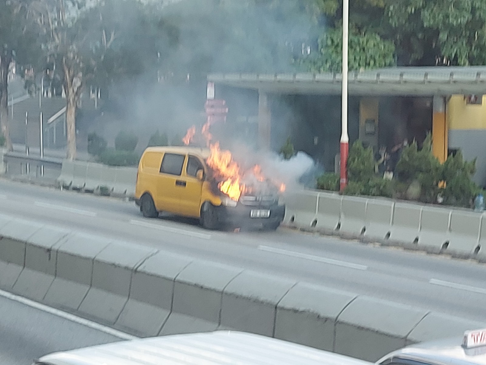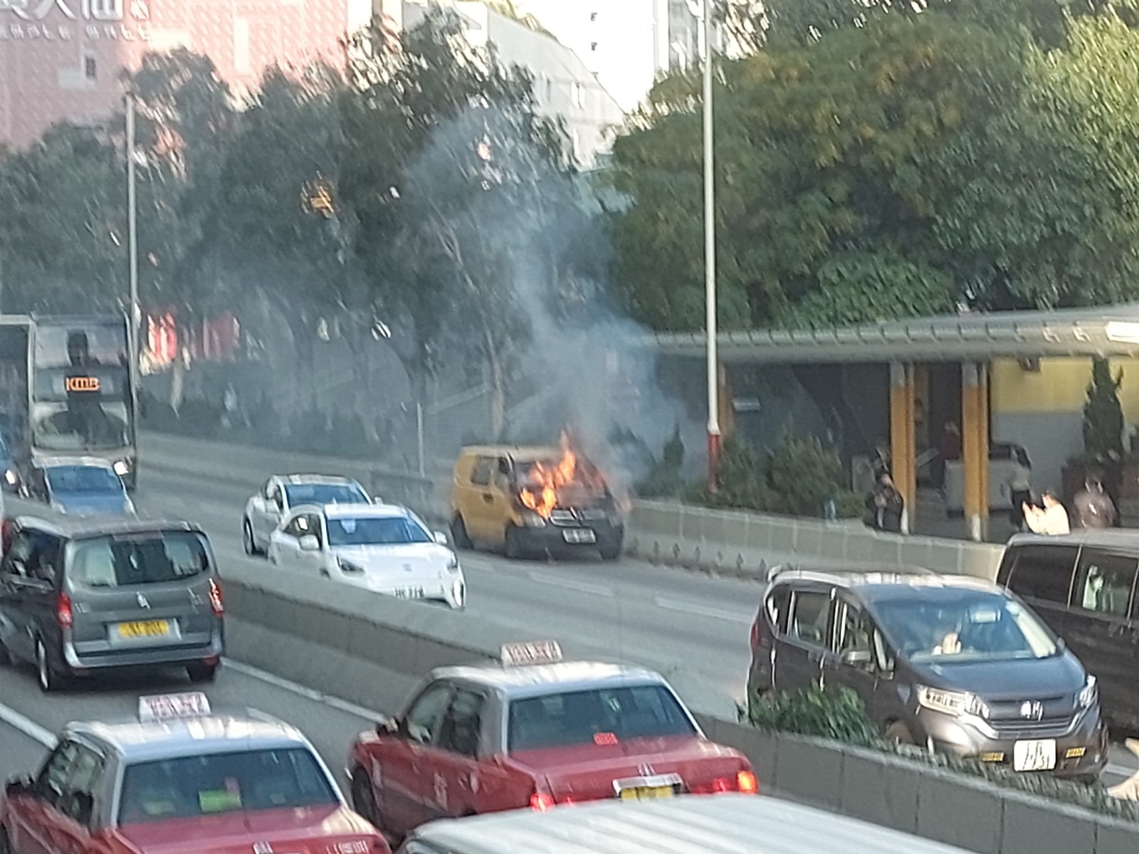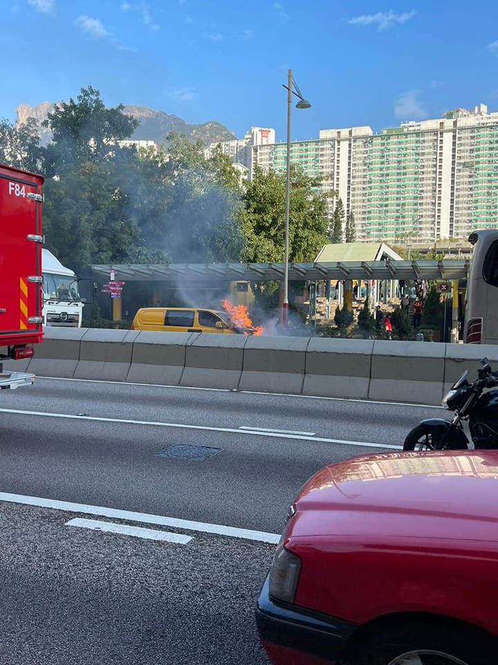 姓李司機表示,當時正接載4名工人由荃灣出發前往觀塘,當沿龍翔道駛至黃大仙廟港鐵站對開,聽到車頭引擎有異響及車頭冒煙着火,於是停在慢線各人下車試圖救火,但未能制止火勢蔓延,於是報警。