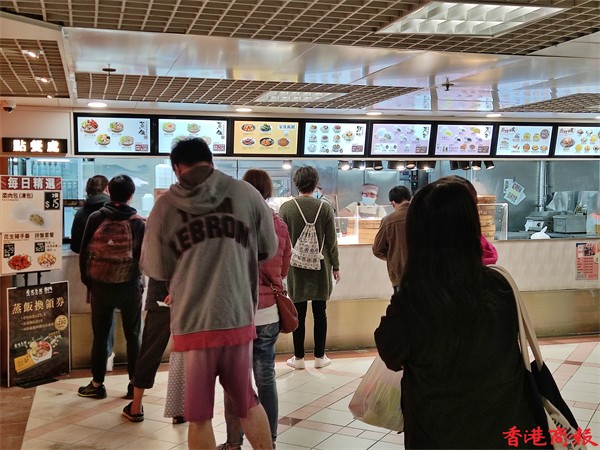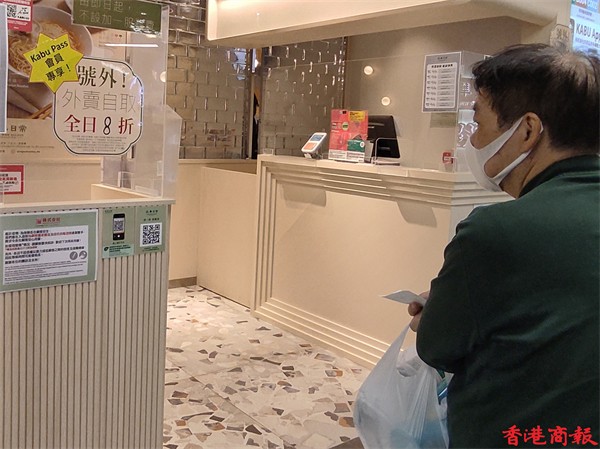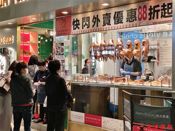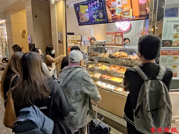 Omicron變種病毒殺入社區,本港爆發多條傳播鏈。政府因應疫情自今日(7日)起收緊防疫措施,由今天一連十四日,食肆由晚上6時起禁止堂食,只能做外賣,不少食肆以外賣折扣吸引顧客。而平時只做外賣的食店則有不少市民排隊購買。(馮瀚文 攝)