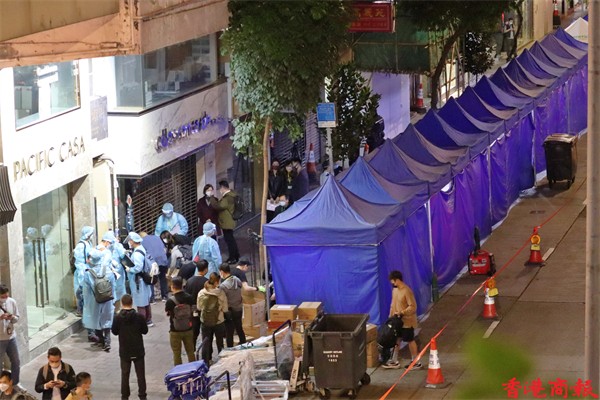 此外,由於政府早前在銅鑼灣污水檢測中發現銅鑼灣信德街1-7號美蘭閣排放的污水對新冠病毒檢查呈陽性,懷疑在大廈內有隱形患者。政府今晚9時起圍封銅鑼灣信德街美蘭閣進行強制檢測,受檢人士須留在其處所並接受強制檢測。(資料圖。)