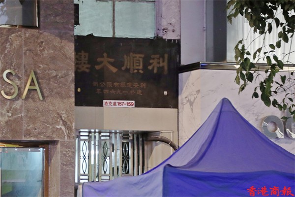 灣仔駱克道157-159號利順大廈圍封強檢現場情況。(馮瀚文攝)