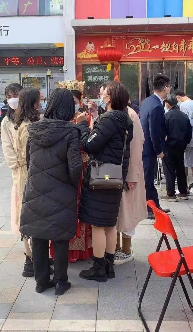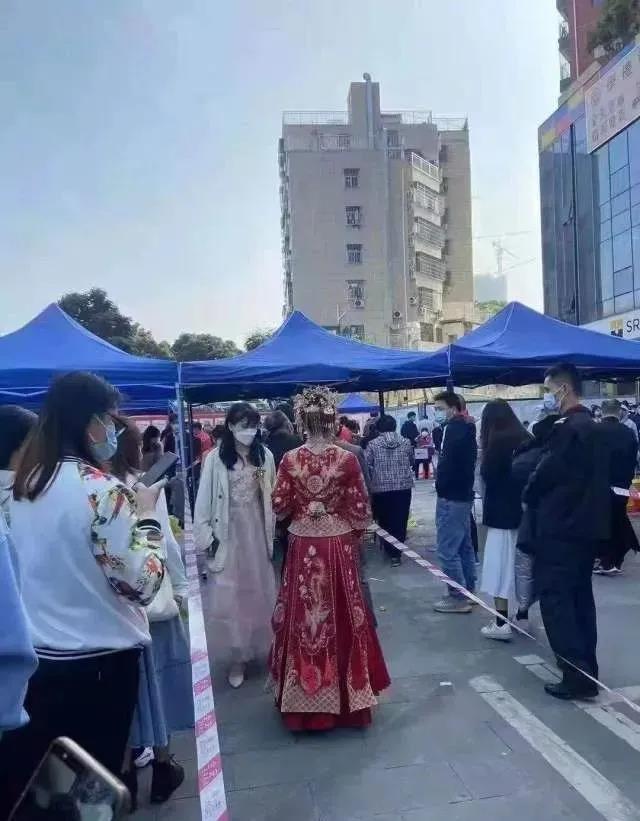 新娘穿着嫁衣做核酸的圖片視頻被發到社交平台後,有網友評論:「可以想像到每路過一個人就說新婚快樂。」據了解,這對新人在獲悉疫情信息後,就主動取消了宴請環節,並對網友、市民線上線下的祝福表示感謝。