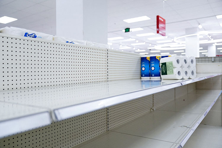 在乳製品區,曾經擺滿乳酪和酸奶的貨架,如今越來越空;烘焙區沒有麵包,生鮮蔬果區的薯仔也所剩無幾。韋布絲特表示,其他商品區供應也吃緊,由於意大利疏菜湯和豌豆湯等罐頭未到貨,湯品區貨架全都擺滿蛤蠣濃湯,「商品貨架越來越空,光靠一個人沒辦法讓貨架上一直有商品。」