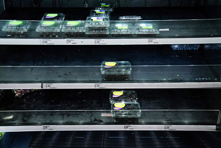 美國各地消費者在好幾家超市也遭遇到相同的情況。懷特利向美聯社表示,他在華盛頓一家Safeway超市找到了所剩不多的肉類和乳製品。