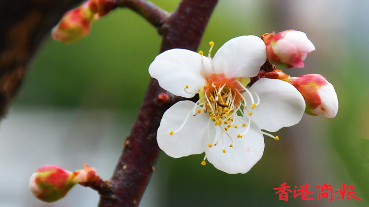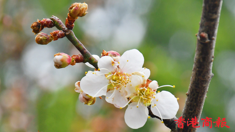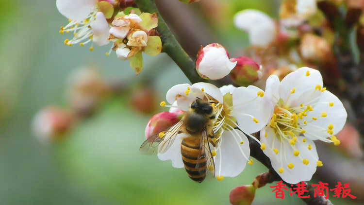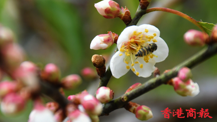 「梅花香自苦寒來」,香港雖然不是苦寒之地,但在新界也能尋到梅花的蹤影。記者在大埔碗窰村一戶民居門口,無意發現一棵白梅花樹,枝頭長滿白色的花蕾,含苞待放,也有不少花朵已經綻放,微微花香吸引了不少蜜蜂。據戶主介紹,這棵梅花已種多年,一般是農曆新年過後才開花,今年可能是之前天氣寒冷,讓梅花提早開放了。