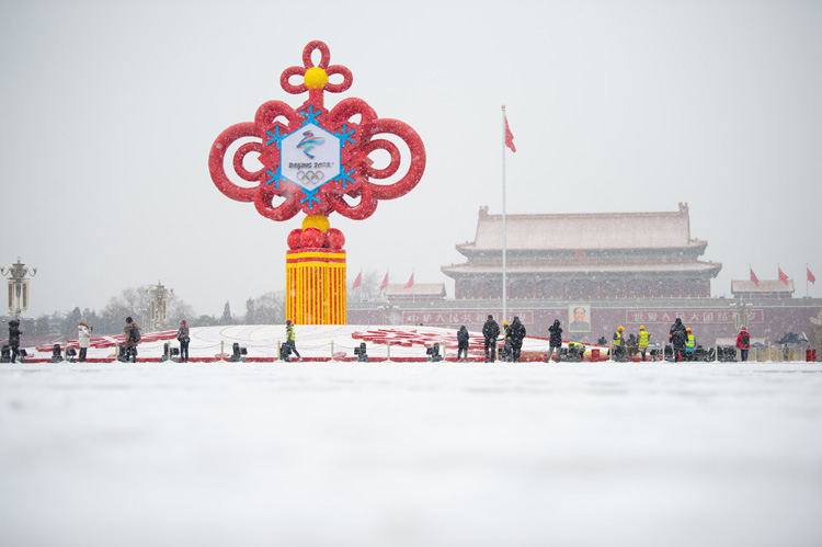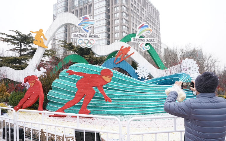 今日(20日)是中國廿四節氣的大寒,北京碰巧也迎來第一場雪,大片雪花如鵝毛般洋洋灑灑,飄落最美冬奧城。北京霎時間被白雪渲染,銀裝素裹,分外靚麗。冬奧景觀小品也披上冬裝,讓人感受到冬奧的腳步越來越近,冬奧氛圍愈加濃厚。當天,北京2022年冬奧會和冬殘奧會城市景觀布置工作完成,多處景觀點亮燈光,為即將到來的冬奧賽事和中國傳統春節增光添彩。