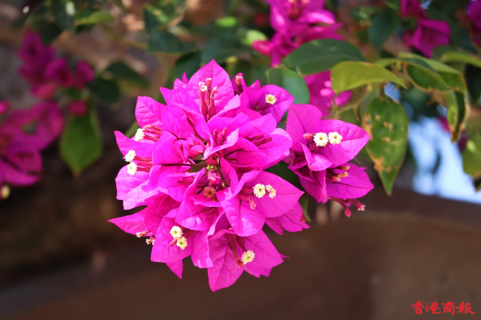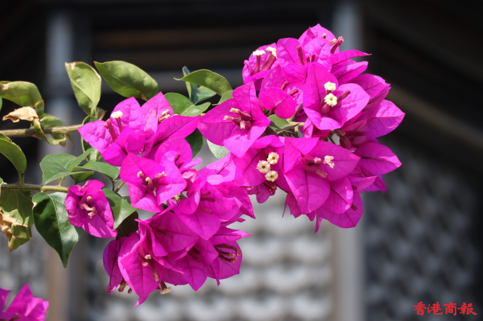 志蓮淨苑的簕杜鵑以盆栽為主,在花匠悉心栽培下,枝葉茂盛,體態優美,為莊嚴的寺廟建築帶來生氣。