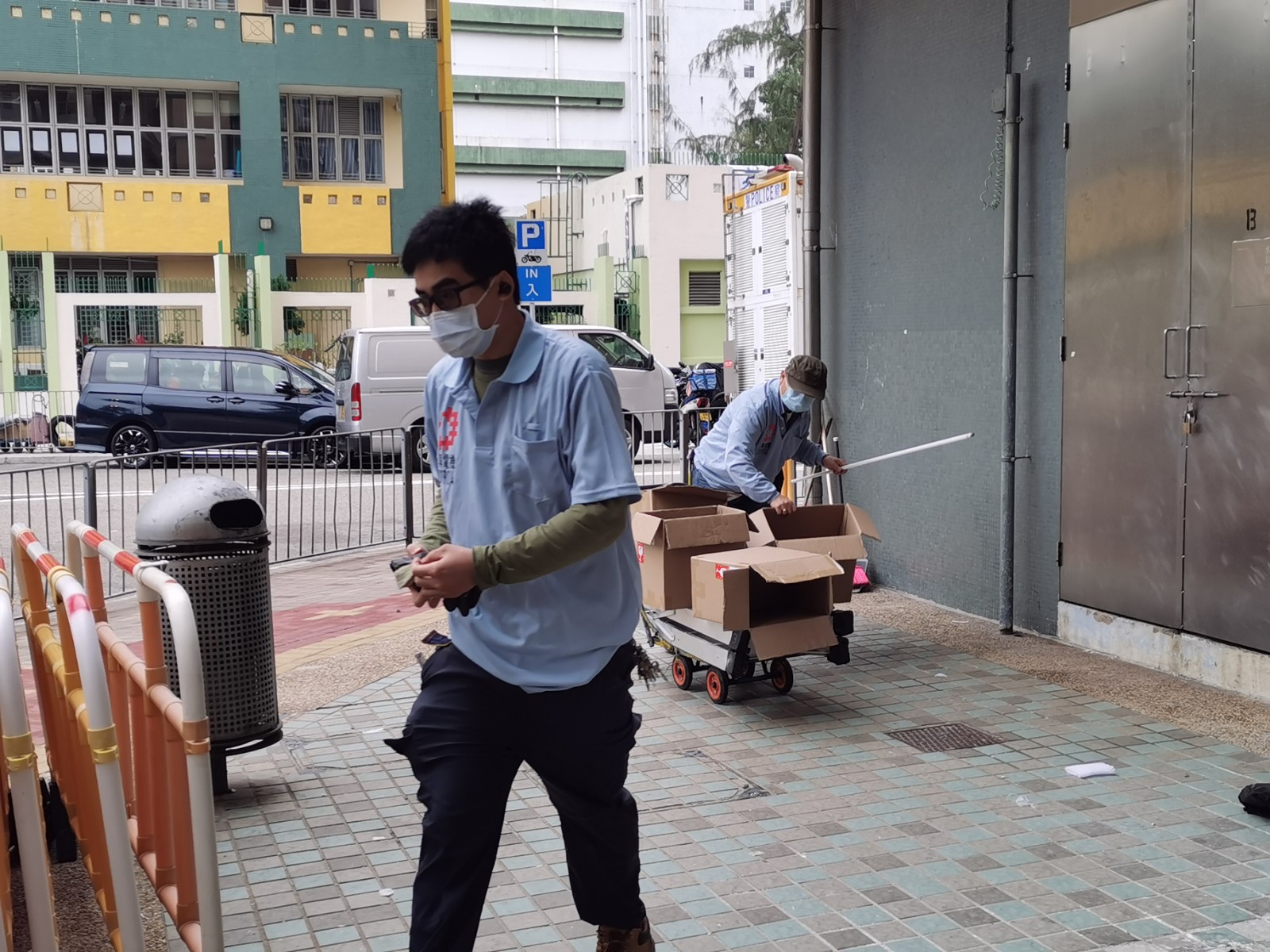 當局在信箱派發感謝信,感謝居民配合圍封行動,民政事務處在現場給每家住戶派發新年福袋,裏面有臘腸、花菇和罐頭鮑魚等賀年食品。