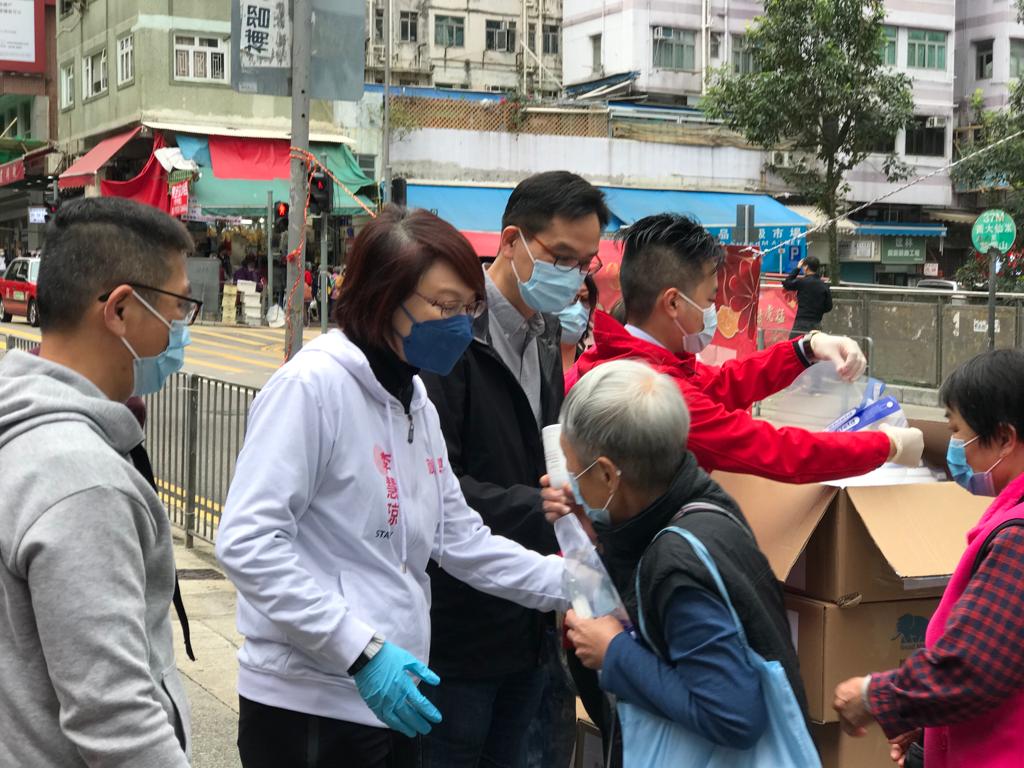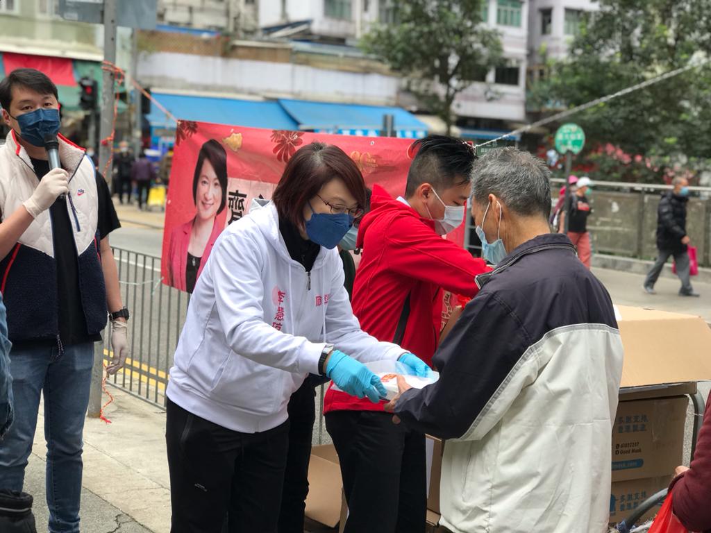 民建聯黃大仙支部今日(29日)表示,本港多區出現確診個案令人關注,民建聯主席李慧琼今早聯同社區幹事何漢文、袁國強及潘卓斌到慈雲山派發防疫物資,並聯同社區幹事李健聰到竹園派發口罩,提醒市民做好防疫措施。