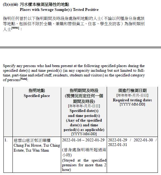另外,因應在慈雲山採集到檢測呈陽性的污水樣本,正暉樓被納入強制檢測公告。
