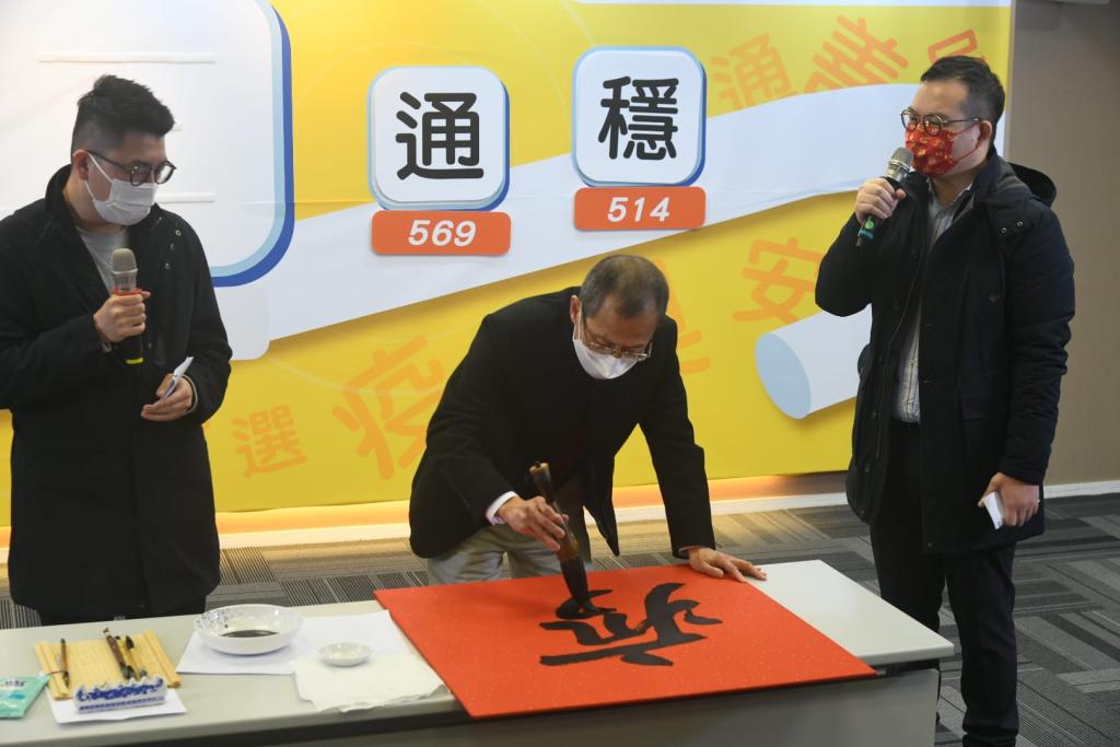 曾鈺成還即席揮毫寫出「疫」字,並解釋「疫」字的來源,指疫的部首「疒」本身與很多疾病都相關;「殳」的意思為長形的古代兵器,若以動詞來解說就是「殳以杸殊人也」,即是需要保持距離。他笑言,古人造字具有智慧,放在今日的社會,就是在疫情嚴峻期間,人們也需要保持社交距離。曾鈺成同時呼籲,為了盡快令疫情緩和,希望市民繼續保持社交距離。