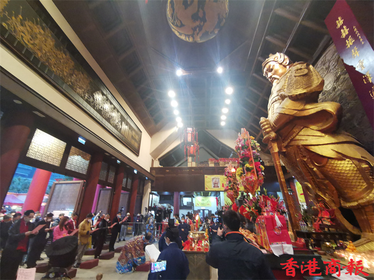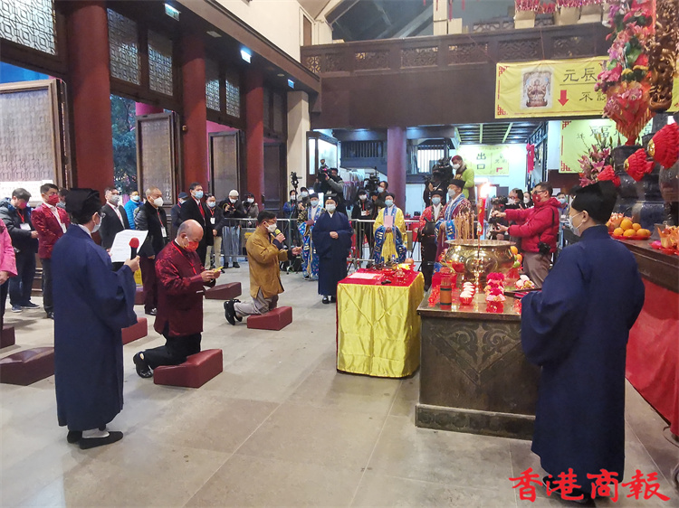 大殿裏面肅靜祥和,各人先上香,誦經,呈上祭品,之後再由新界鄉議會主席劉業強為香港求得38號中簽,整個儀式大約20多分鐘。