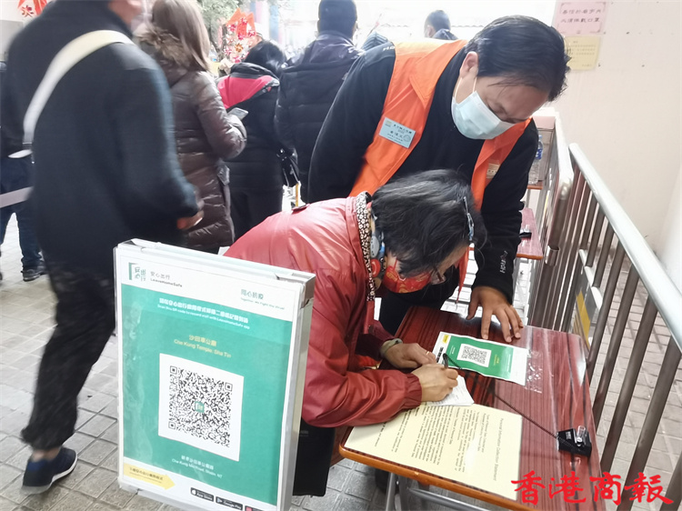 和往年不一樣的是所有進車公廟的市民都要掃安心出行,劉婆婆年紀大不太會用手機,需要在工作人員協助下填寫資料,她說已經習慣了,不覺得不方便,登記清楚和戴口罩都有助於控制疫情,每個人都應該配合。她説,以往過年都會出去吃飯見朋友親戚,一般初三才過來,但今年都各自在家比較少走動,所以很清閒,所以就提早在年初二過來祈福。她的願望也是大家平安,疫情快點過去。