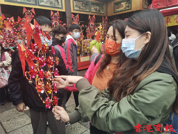 有不少家長也帶着小朋友一起來祈福,上小學的Jessica特地穿了條紅裙子,新年願望和很多的小朋友一樣,是學業進步,然後她想了一下又說,現在因為疫情上不了學,留在家裏學習很沒效率也很悶,而且放假也不能去旅行,出門還要戴著口罩,很不方便,還得向車公爺爺加個願望,希望疫情快快過去,香港恢復正常。