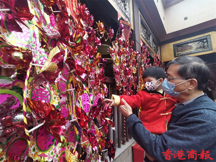 胡先生去年沒有來,因為疫情比較嚴重,今年打了針,他覺得放心多了,所以就帶上兒子過來祈福,最重要是要買上一個大風車轉運,為自己也為香港,他希望香港一帆風順,經濟起飛,明年再來祈福的時候不用戴口罩。