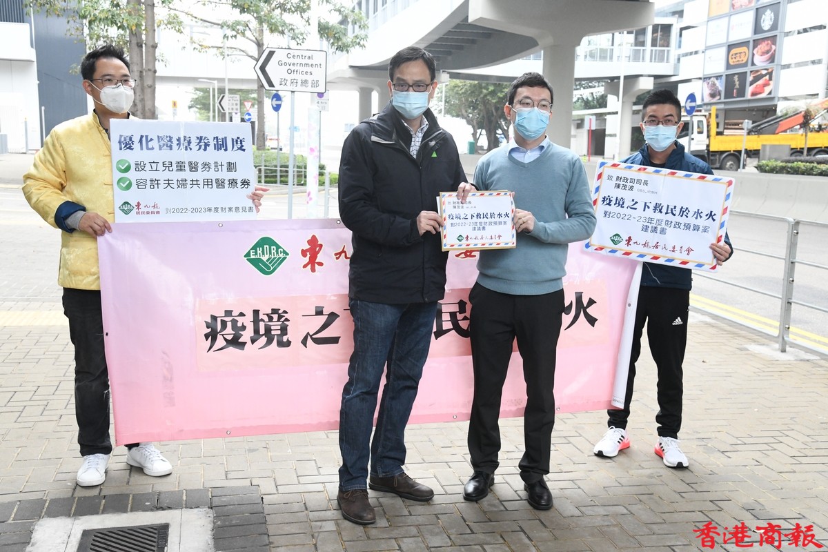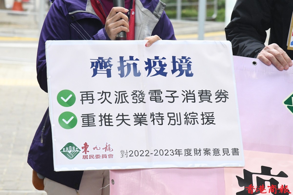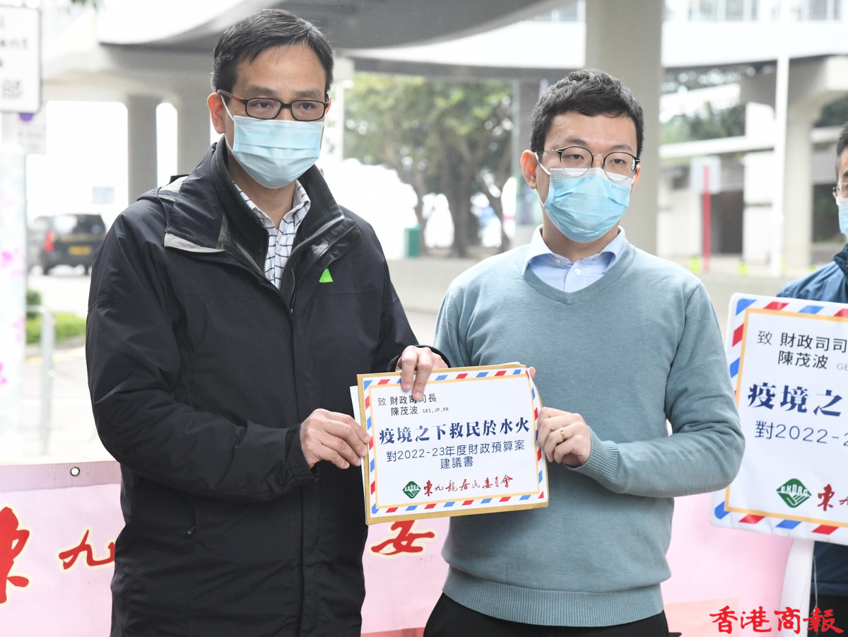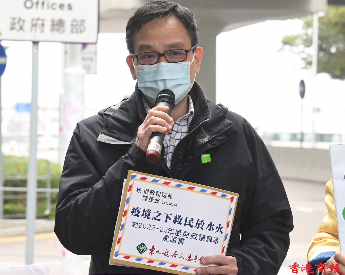 新一份財政預算案將本月下旬公布,東九龍居民委員會今日(7日)派員到政府總部請願,向財政司司長陳茂波提交對預算案及民生紓困措施的建議。