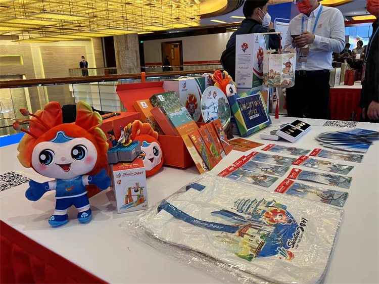 第三屆亞青會吉祥物「金鳳娃」亮相2022北京新聞中心。