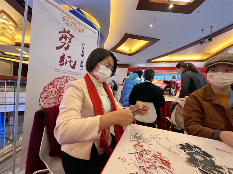廣東潮陽剪紙非遺傳承人展示剪紙藝術