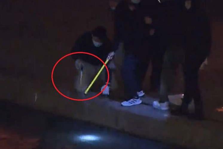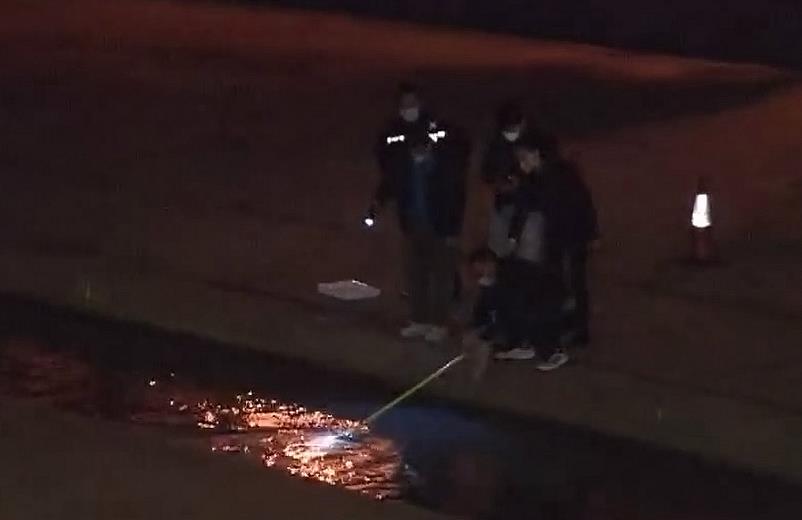 探員在明渠打撈利刀。