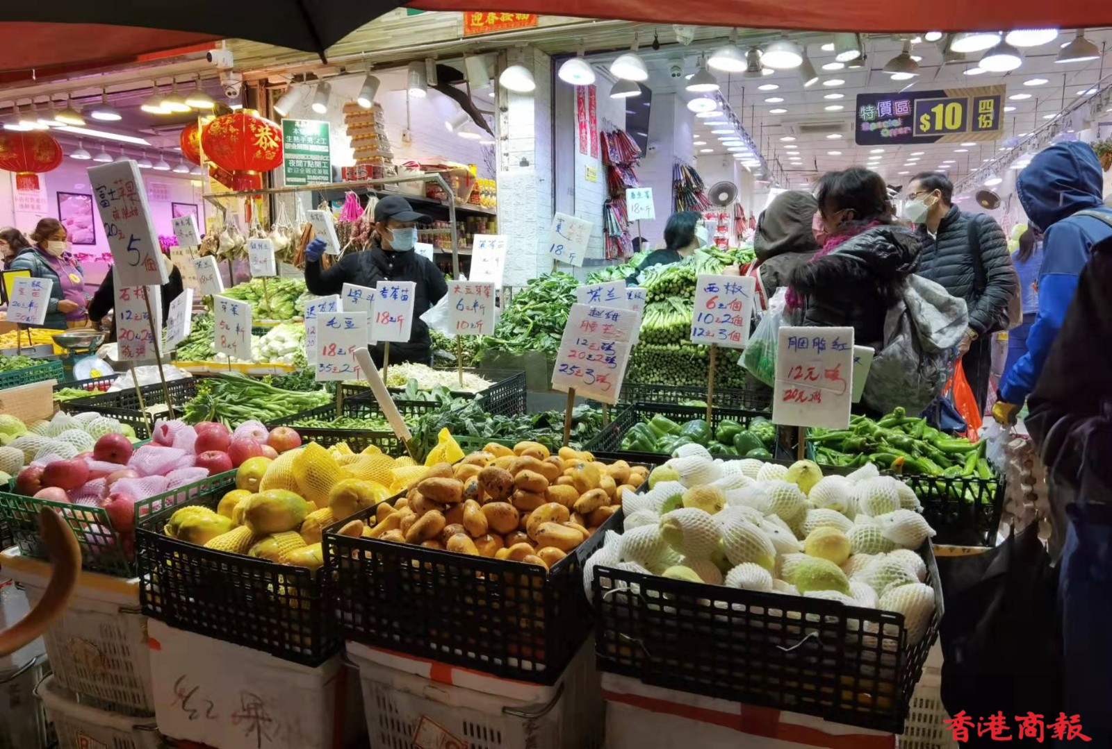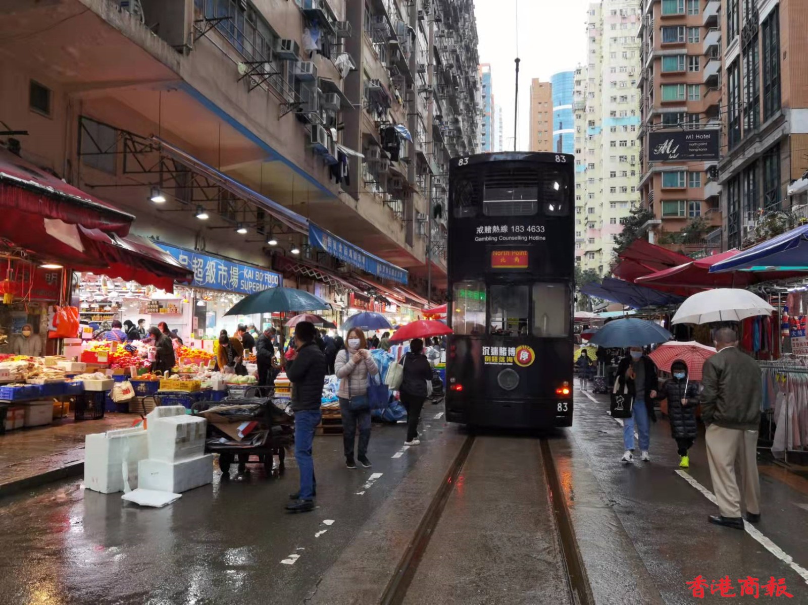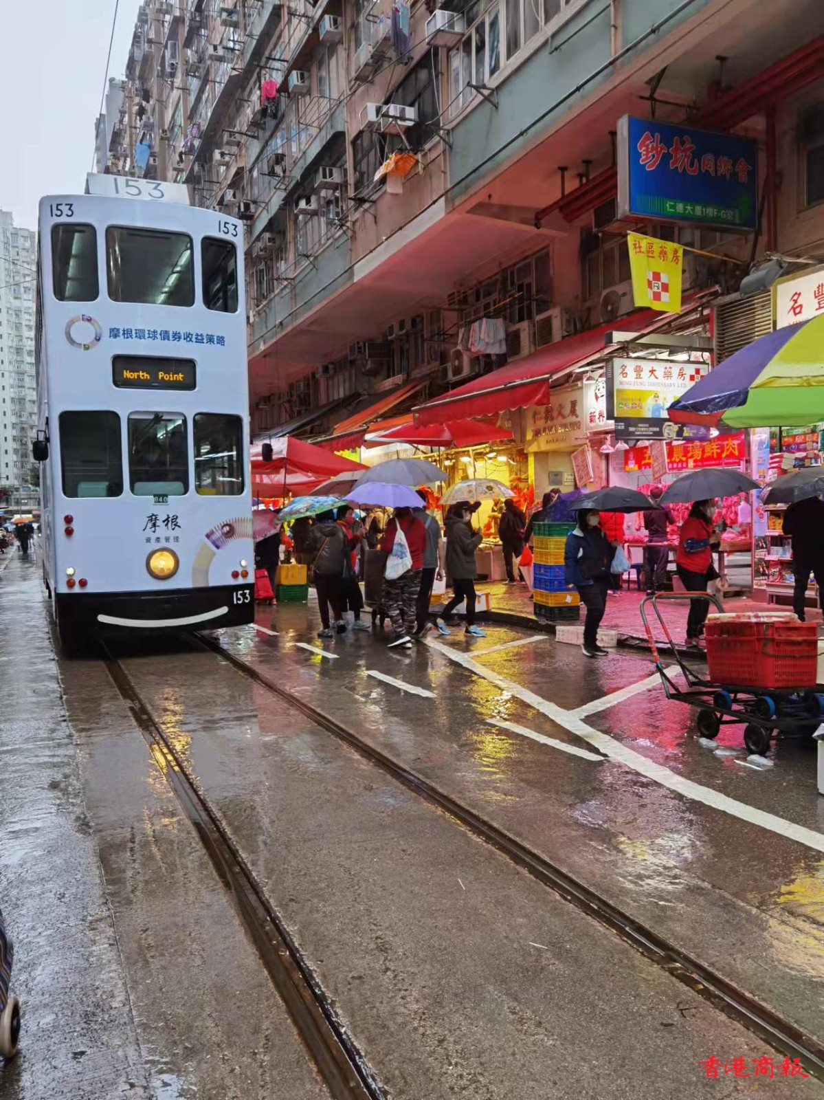 春秧街乃香港著名街市,平時有電車叮叮經過,故打卡者不絕。疫境中,這裏人丁仍旺,街市中甚至有一間隔離酒店。惟近期疫情重物價貴,人流才見稍微減少。
