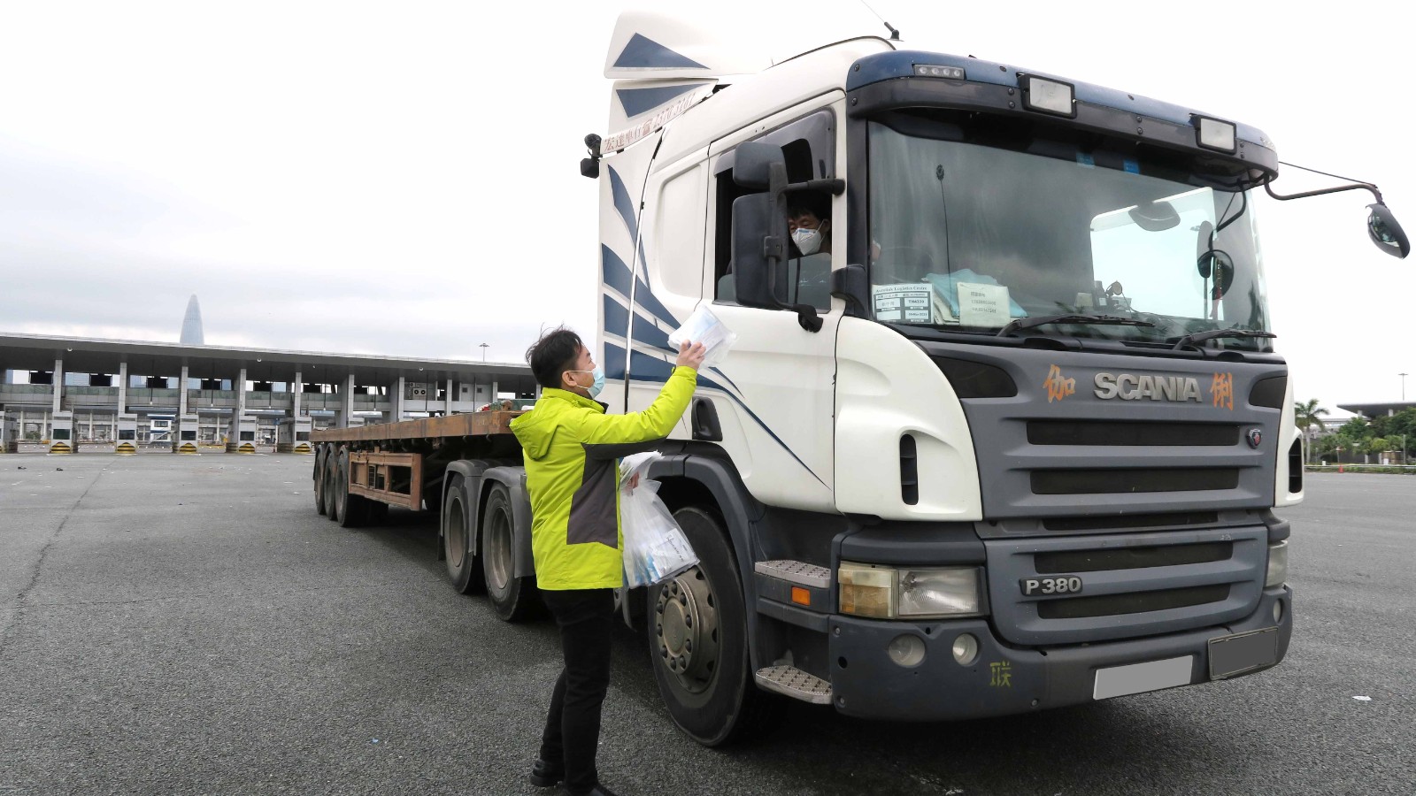 第五波疫情爆發後,部分司機受到感染,加上防疫措施不斷改變,為保障司機職業健康,貨櫃運輸業職工總會(貨櫃工會)今日(23日)到深圳灣口岸向途經司機派發防疫抗疫物資,希望司機做好各項保護措施,確保身體健康,為供港物資提供保障,讓巿民能夠買到價廉物美的生活物資。
