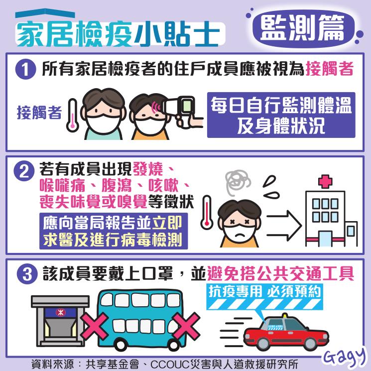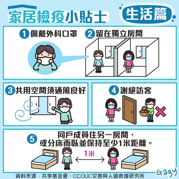 香港第五波疫情迅速蔓延,新增病例連續多日破千,昨增8674宗確診再創疫情以來新高。由於防控工作需要很多市民需要處於家居檢疫狀態。家居檢疫需要注意什麼? 如何減少不必要的感染風險?一起來通過短片及插畫了解一下: