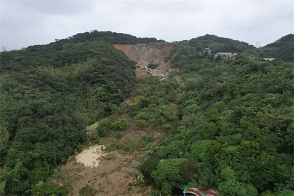 綜合台媒24日報道,台灣基隆市信義區槓子寮路山區疑受連日大雨沖刷,昨天(23日)晚間發生大面積崩塌,路旁資源回收場跟着滑落至下方的教忠公園,土石淹沒公園內約半個籃球場,空拍畫面曝光,令人觸目驚心。事發後,為確保人員安全,市府進行全面封閉管制,避免人車誤闖。