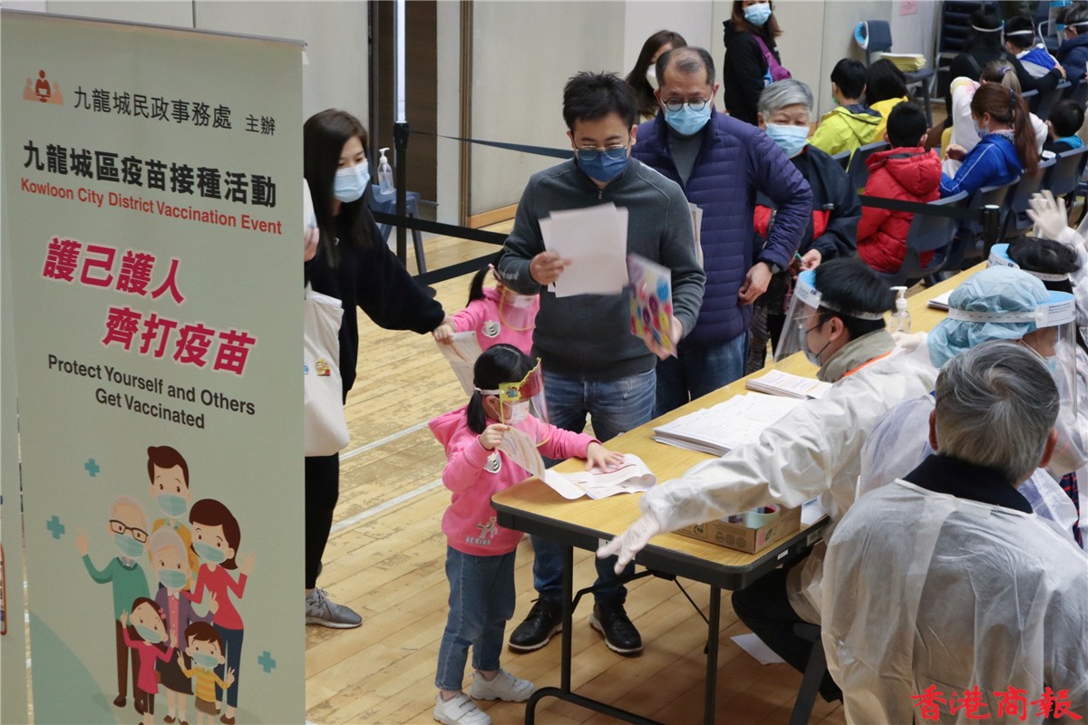 第五波疫情來勢洶洶,鑒於現時社區對接種疫苗具殷切需求,爲此九龍城民政事務處聯同區內主要地區委員會及機構,今天(25日)在紅磡社區會堂為3歲以上急需疫苗保護的人士接種科興疫苗。是次接種疫苗活動涵蓋不同年齡層,從幼兒園學童至長者,以及需要特殊安排的群組,如特殊學校學童。(記者馮瀚文攝)