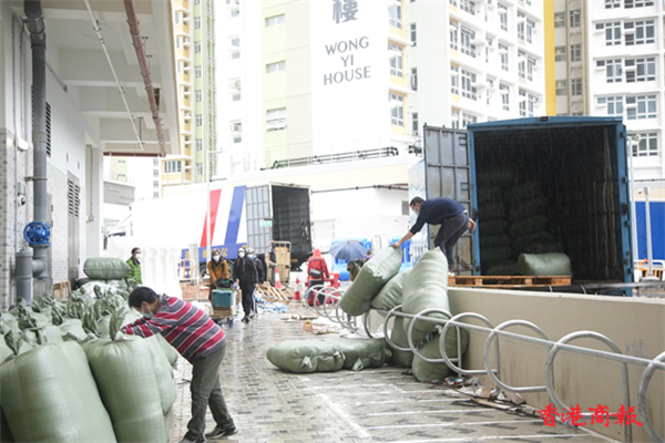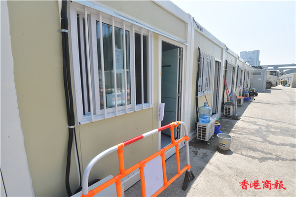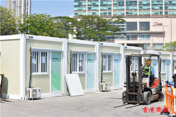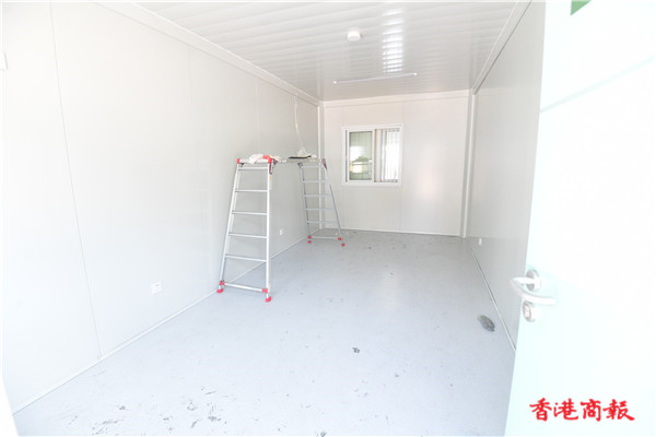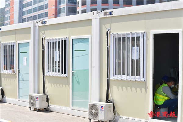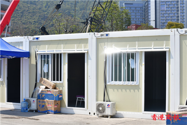 目前工地上有超過2000人24小時輪班施工。建築所需要的「大包廂」(用於建造隔離設施的預製件)已於星期三陸續運到,正在拼接和安裝水電等接駁。下周初有望完成青衣這個隔離中心一共3900多個隔離單位,盡快投入服務。項目現場所見,各個隔離單位大約200平方呎,前後2扇窗,大多數單位已裝上了冷氣機。工友們正在運送及安裝內部裝備,有些正在貼牆紙。