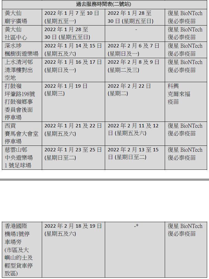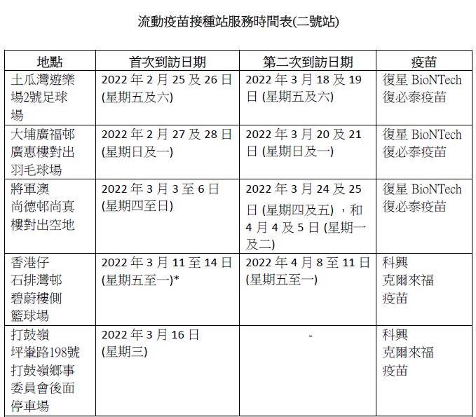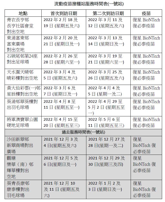 港府將於本周五(4日)增加兩個新冠疫苗流動接種站,服務多個屋邨外,亦會走訪多間學校,讓更多市民和適齡學生接種新冠疫苗。